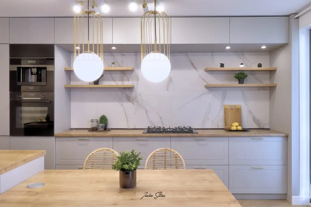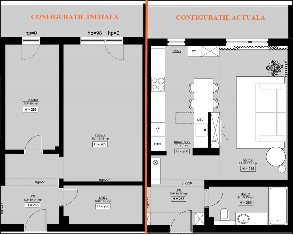 Deschide Galeria“Am preluat apartamentul cand era la gri, in acest stadiu a fost achizitinat de catre beneficiari. Acest lucru ne-a oferit o oarecare libertate in a regandi anumite zone precum bucataria si suita matrimoniala, dar si de a alege finisajele dorite pentru pereti si pardosela.”