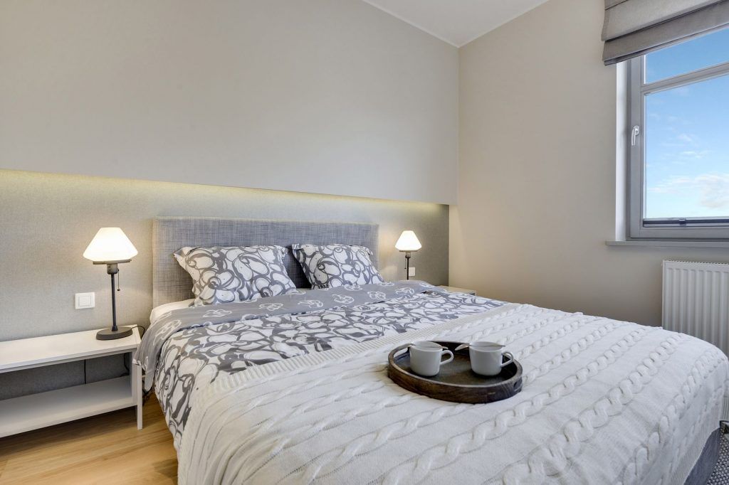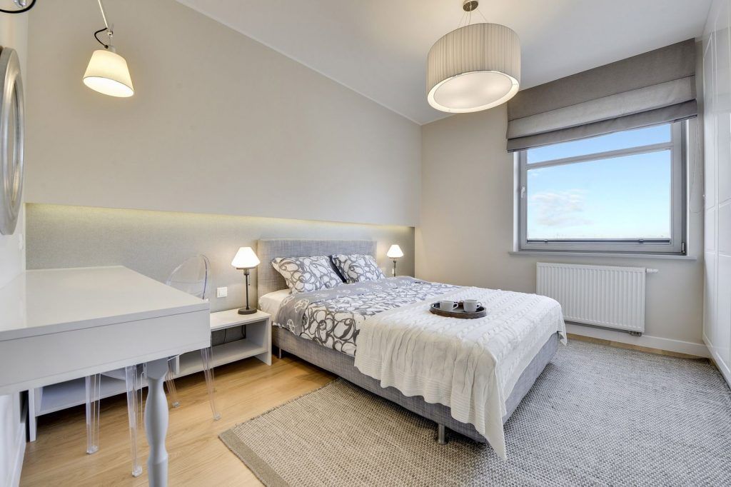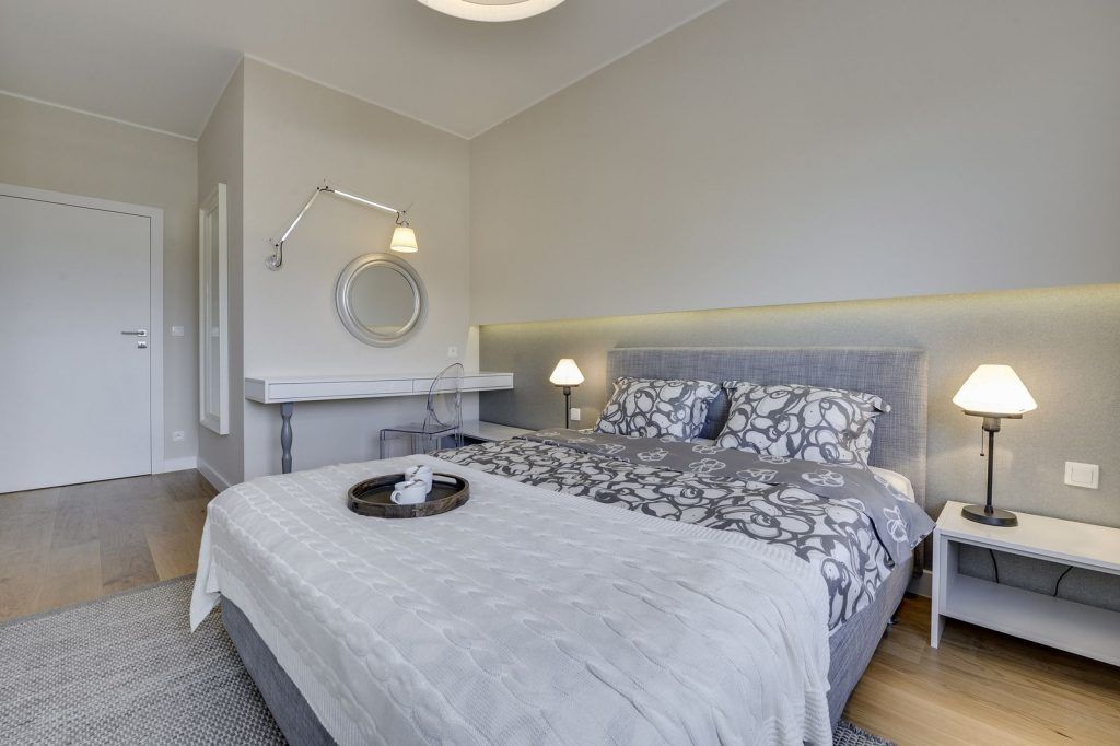 In dormitor se continua mixul dintre alb, crem, gri si lemn. Un punct de interes este patul ce impresioneaza prin confortul oferit de generozitatea lui si a texturilor alese. Corpurile de iluminat vin in completarea unei atmosfere intime. In fata patului, pe intreg peretele nu putem sa nu remarcam dressing-ul, cu un vast spatiu dedicat depozitarii.