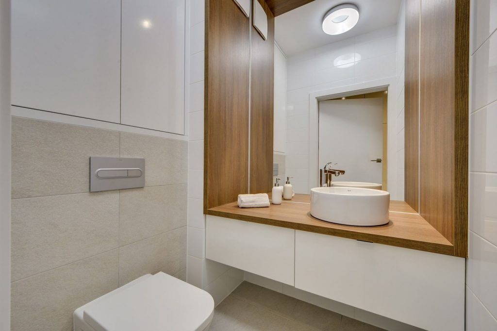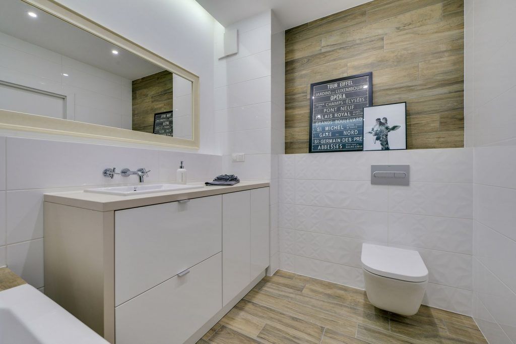 Baia pastreaza echilibru intre functionalitate si relaxare. Ne bucuram de aceesi continuitate din punct de vedere stilistic si cromatic. Abundenta albului alaturi de lemn si elemente indraznete valorifica si transforma intreg spatiul. Putem spune ca tapetul cu tematica din natura, inveseleste decorul iar efectul de marire al spatiului este bine punctat cu ajutorul luminii artificiale si al oglinzilor.