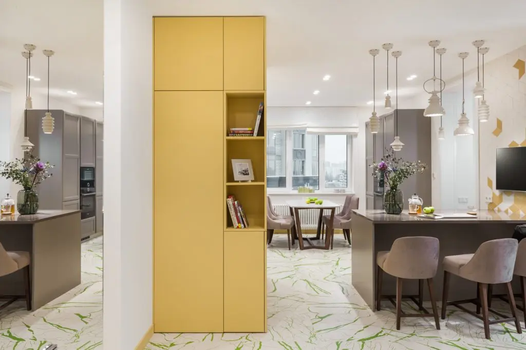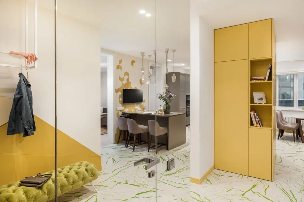Acestia din urma au mizat pe o abordare simpla, cu mult curaj, astfel incat fiecare zona sa fie pusa in valoare. Ingredientul cheie in amenajarea acestui spatiu a fost culoarea galbena, culoare vesela, asociata cu caldura soarelui si care emana energie puternica in camera. Dar hai mai bine sa va prezentam intreaga amenajare, cu mai multe idei si detalii aplicate aici.