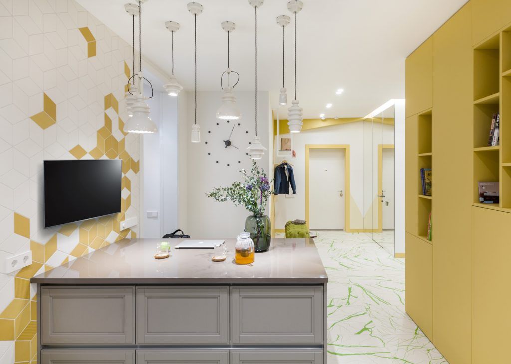 Acestia din urma au mizat pe o abordare simpla, cu mult curaj, astfel incat fiecare zona sa fie pusa in valoare. Ingredientul cheie in amenajarea acestui spatiu a fost culoarea galbena, culoare vesela, asociata cu caldura soarelui si care emana energie puternica in camera. Dar hai mai bine sa va prezentam intreaga amenajare, cu mai multe idei si detalii aplicate aici.