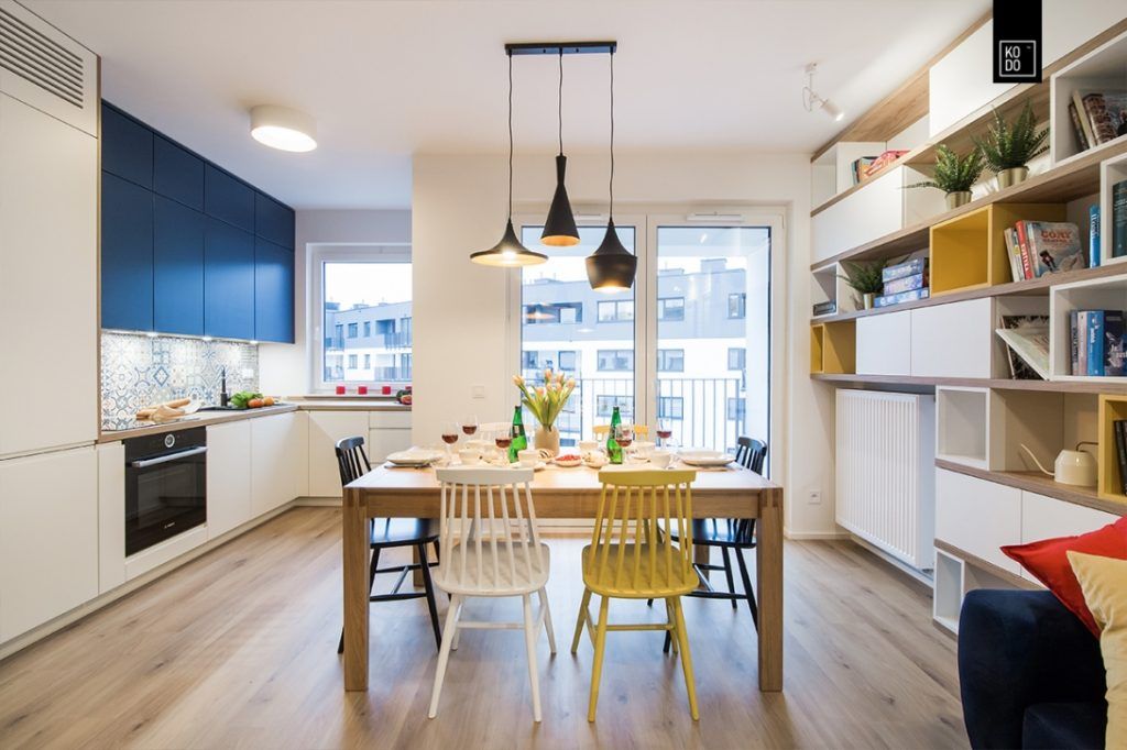 Deschide GaleriaIn zona de zi regasim functiunile principale: living, bucatarie si dining, toate conturate armonios intr-un spatiu comun. Paleta cromatica este reprezentata de un mix de culori albastru, galben si rosu, a caror imbinare reprezinta punctul de interes al intregului spatiu.