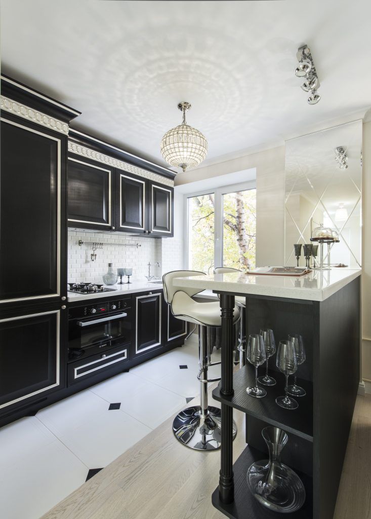 S-a lucrat pe baza contrastului primar, cel in care luxul transpare cel mai bine. Paleta de nuante crem, pasteluri diluate, alb cremos si tonuri naturale creeaza o atmosfera calda, placuta. Pentru delimitare au fost folosite tusele negre mobilierul inchis al bucatariei bine utilate marcheaza zona de gatit, iar barul gri deschide zona livingului. Asa cum se observa, barul a primit functie dubla, el intrunind si calitatile unui spatiu de dining foarte sic.