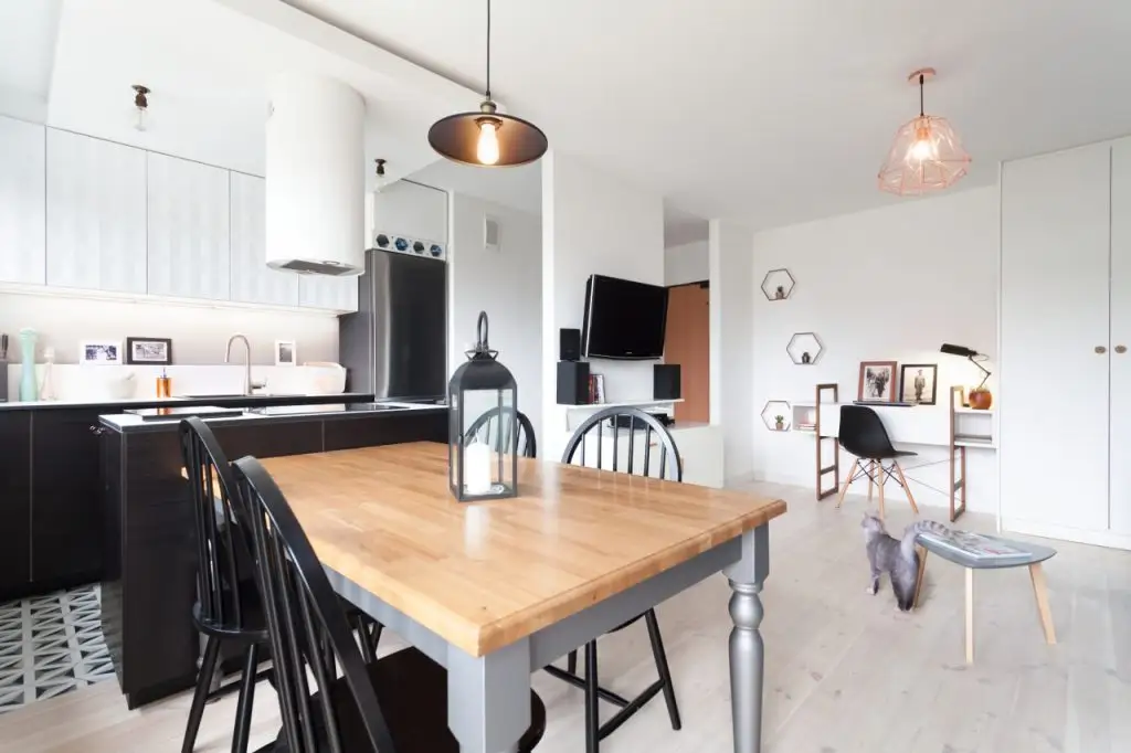 Pentru aceasta amenajare de apartament, echipa de la Boho Studio din Polonia a primit cateva indicatii clare din partea tinerei beneficiare: o bucatarie open space cu insula, un design actual, functional si cu accente de culoare.