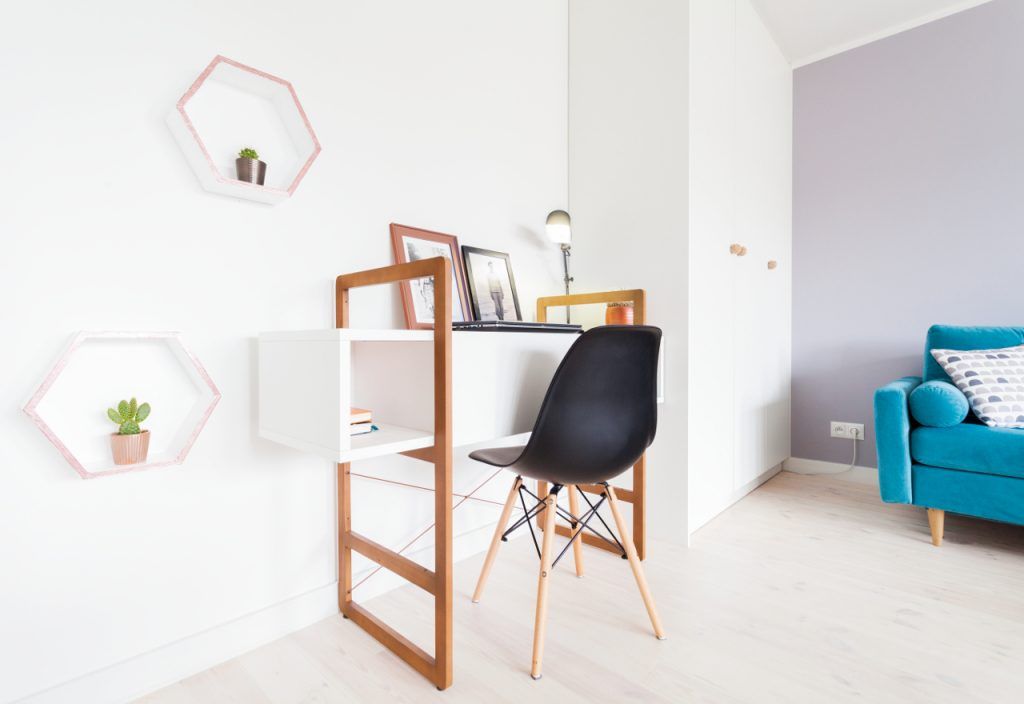 Suprafata de 42 metri patrati este impartita in doua camere, cu zona de zi si dormitor. Incaperile fiind restranse, tanara a apelat la ajutorul designerului pentru a o indruma spre amenajarea potrivita nevoilor. Pentru ca bugetul ei a fost limitat, spatiul a fost amenajat cu strictul necesar.