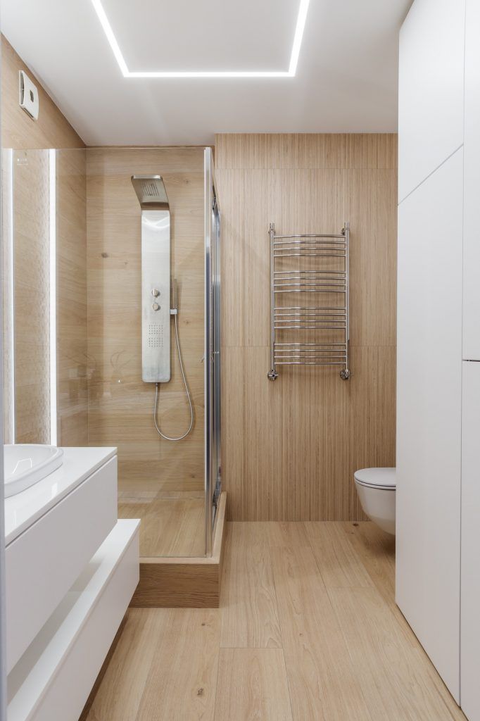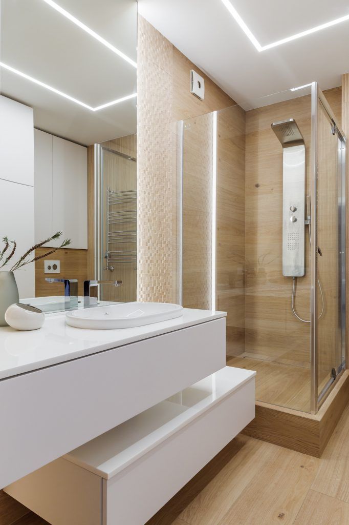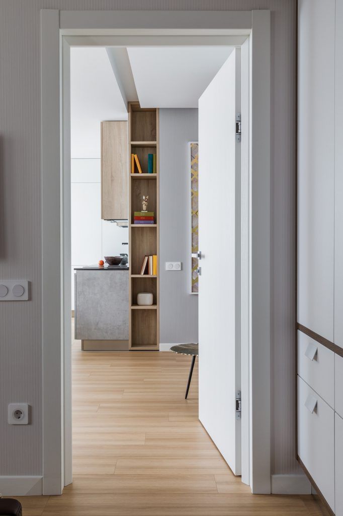 Regasim un punct de interes si o atractie in sine inca din zona intrarii, unde depozitarea este suspendata sub forma unui paralelipiped intr-o nuanta placuta de gri deschis, care coboara din plafon. Ideea de a suspendata piesele de mobilier a fost continuata si in cadrul baii.