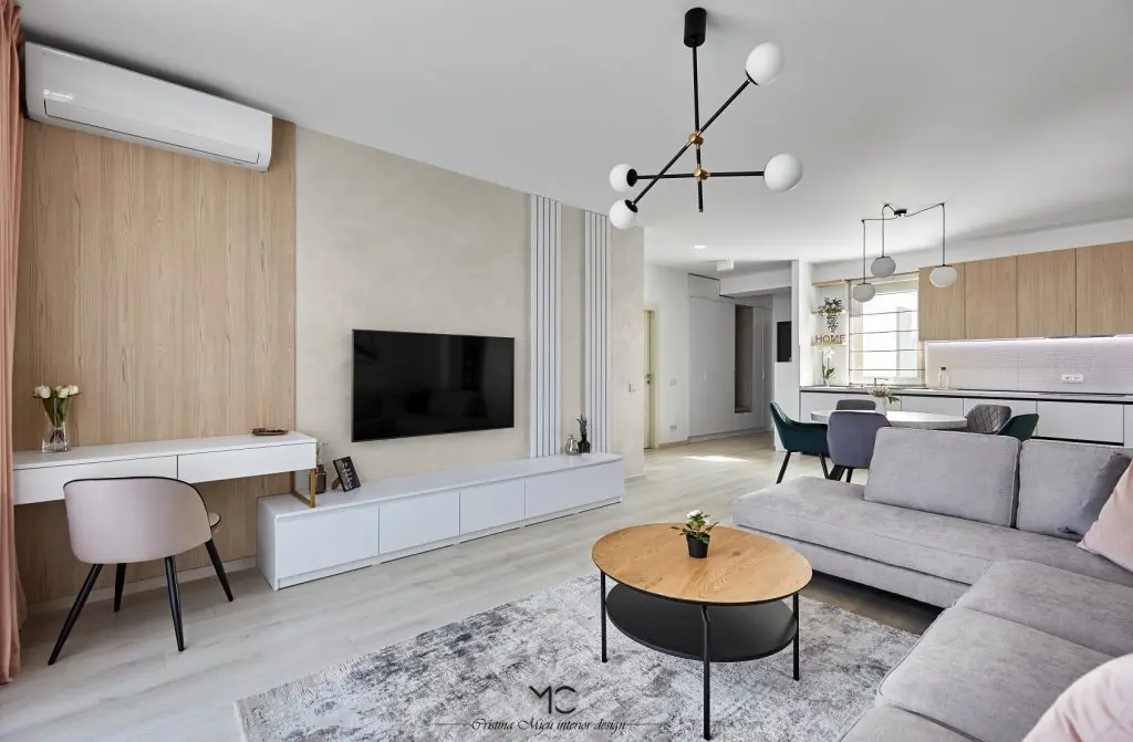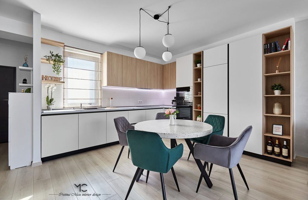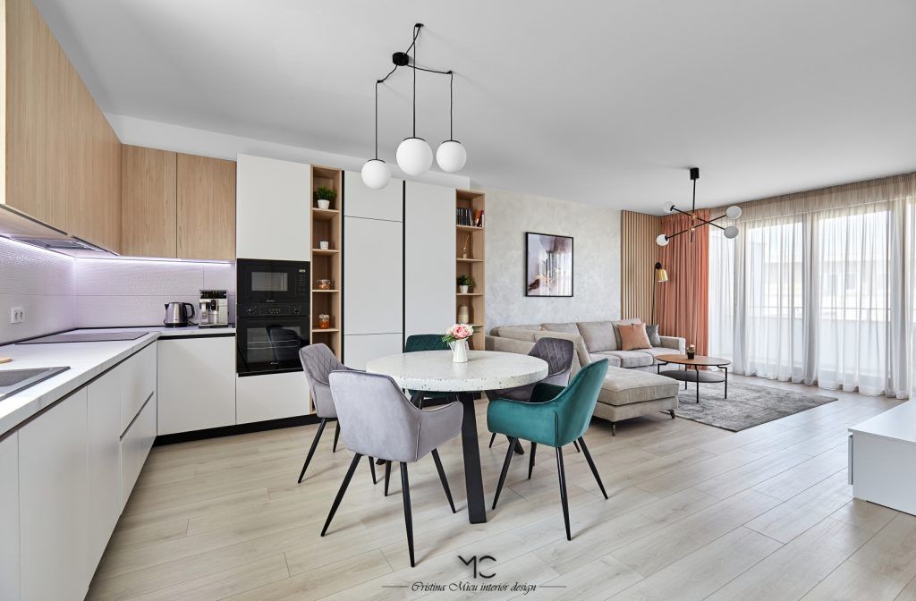 Echipa de proiectare ne-a povestit ca amenajarea a durat aproximativ patru luni, avand un grad mic de complexitate, apartamentul a fost predat in ianuarie 2021.