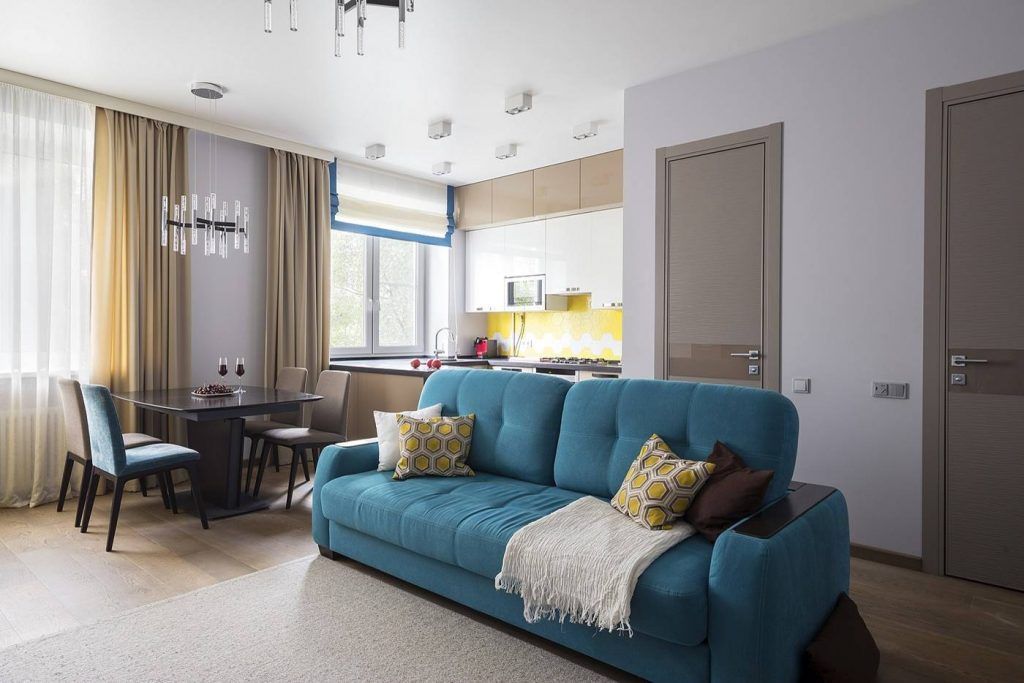 Living-ul si bucataria formeaza un spatiu deschis de dimensiuni impresionante. In stil specific scandinav, accentul cade pe culori, fiind evidentiate nuantele de turcoaz si galben, aflate in perfecta omogenitate cu beige-ul si paletele de gri.