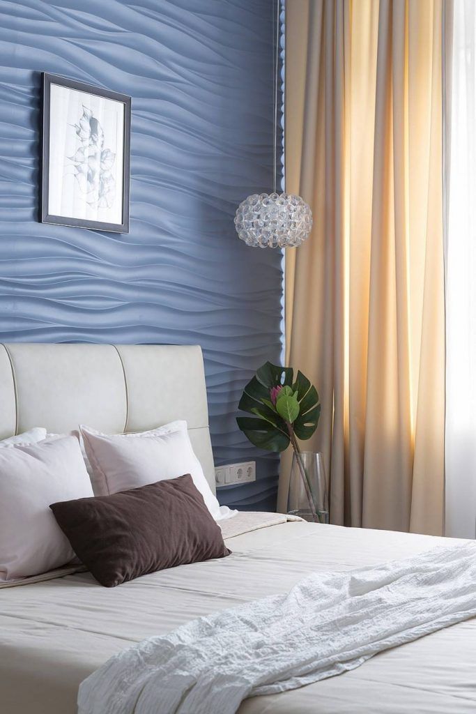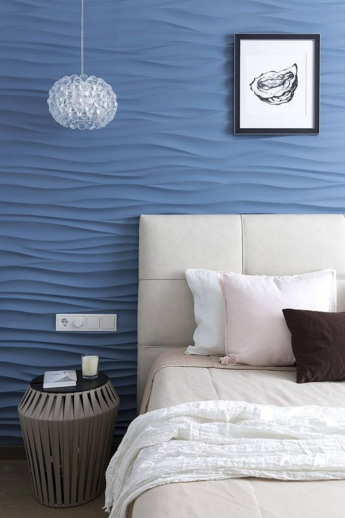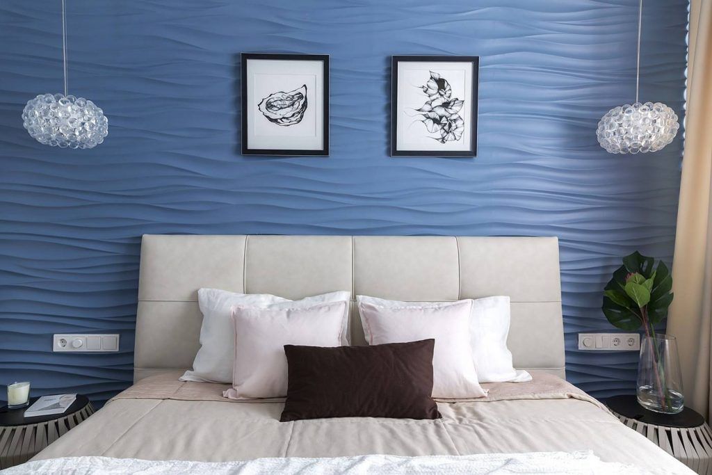 Dormitorul matrimonial inchide atmosfera si pozitioneaza central un pat generos in spatele caruia se face remarcat un tapet tridimensional, de nuanta inchisa, ce hipnotizeaza vizual si aduce incaperii natura in forma ei cea mai adorata: valuri, mare, liniste.Nu avem cum sa nu observam prezenta obiectelor de iluminat moderne dar cu un aer usor vintage ce imita candelabrele din pietre pretioase.