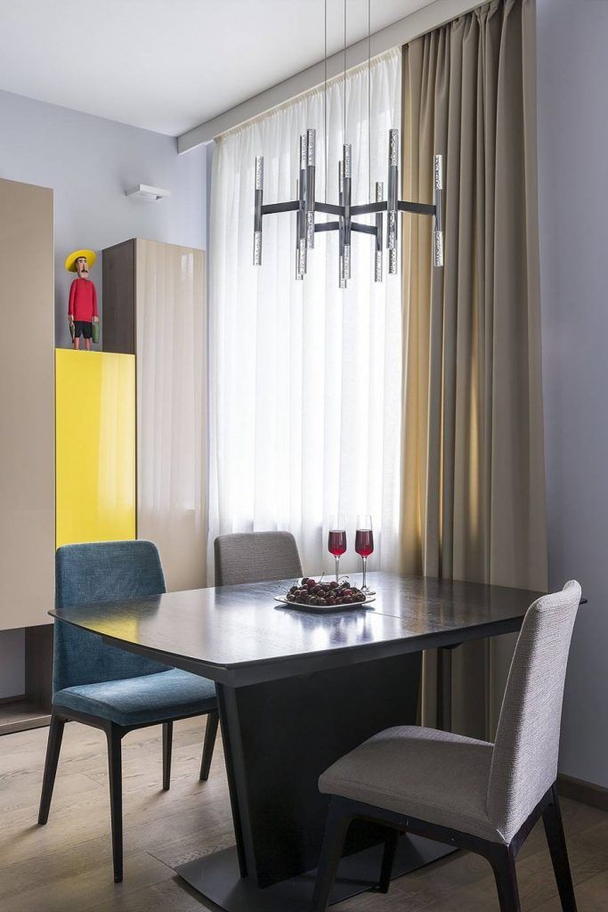 Si cum acest spatiu reprezinta locul ideal savurarii cafelei preferate, atat mobilierul living-ului cat si cel al bucatariei are in compozitia sa nuante de cappuccino lucios pentru a oferi efectul de simplitate si eleganta. Galbenul, pata principala de culoare, se aseaza asa cum stie ea cel mai bine: mural.