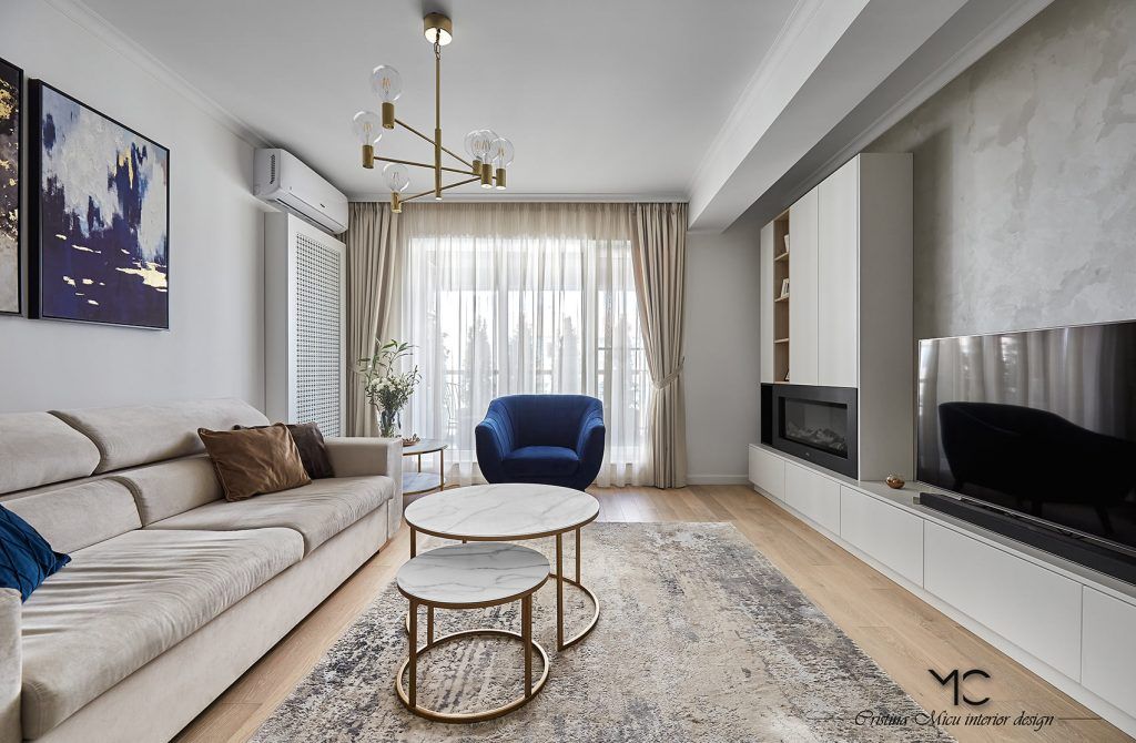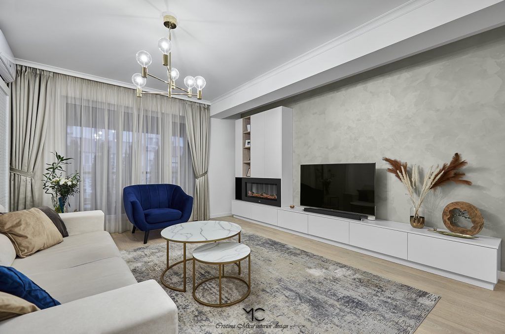 Colaborarea a inceput cand apartamentul din Minulescu Residence, Bucuresti, era inca in stadiul la gri, nefinisat, insa conform designerilor, s-a dovedit a fi un santier cu grad mediu de complexitate. Amenajarea celor 98 mp utili a durat aproximativ 7 luni, cu o investitie de 45000 de euro.