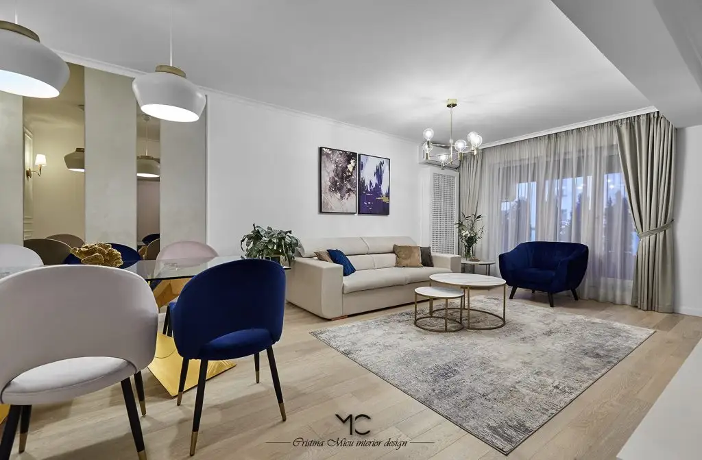 Beneficiarii si-au dorit o amenajare moderna, cu influente luxury-glam, fara a compromite insa confortul si ergonomia spatiului. Din acest punct, stilul amenjarii a fost clar definit si a condus catre propunerea unor materiale si finisaje sofisticate, elegante si catre crearea unor detalii arhitecturale subtile.