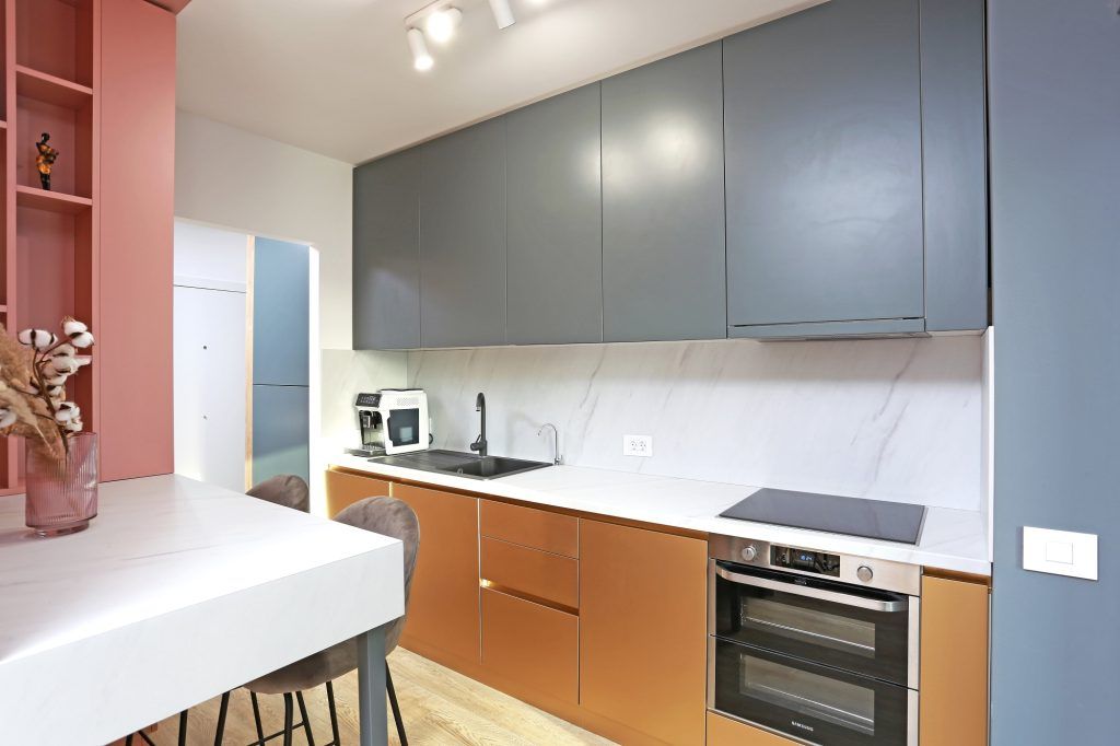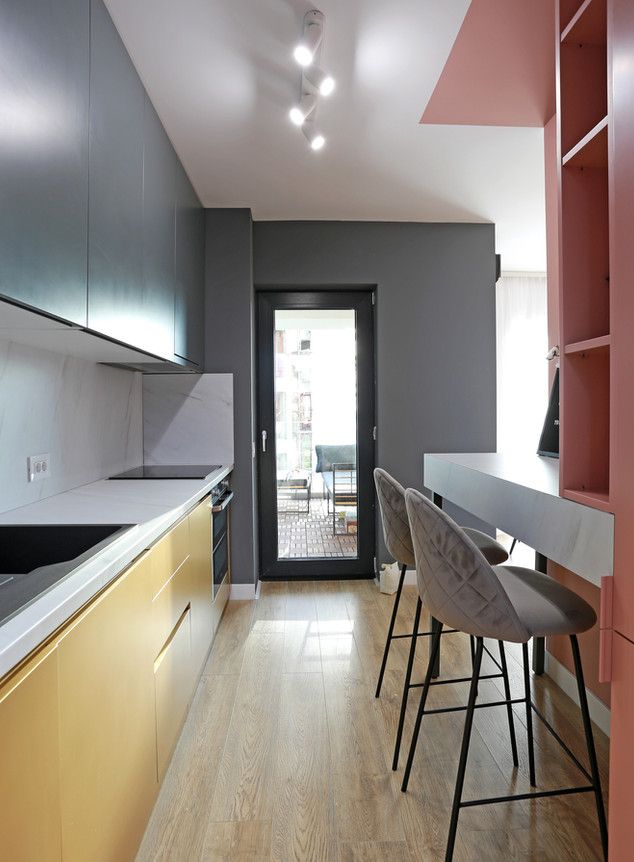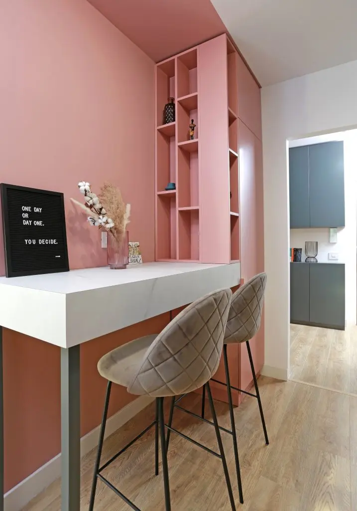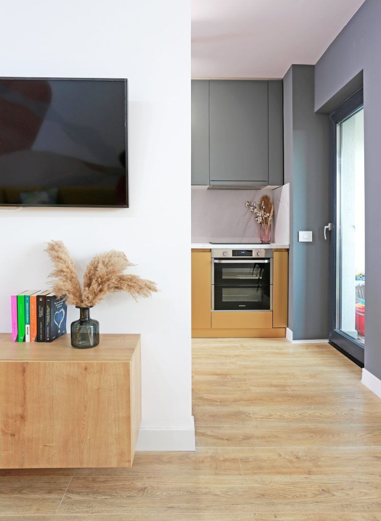 Deschide Galeria“Astfel, am renuntat la a mai inchide bucataria si holul si in acest mod, toata zona de zi a devenit foarte flexibila si omogena. Acest lucru fiind ideal mai ales in cazul unui apartament cu o suprafata nu foarte mare.”