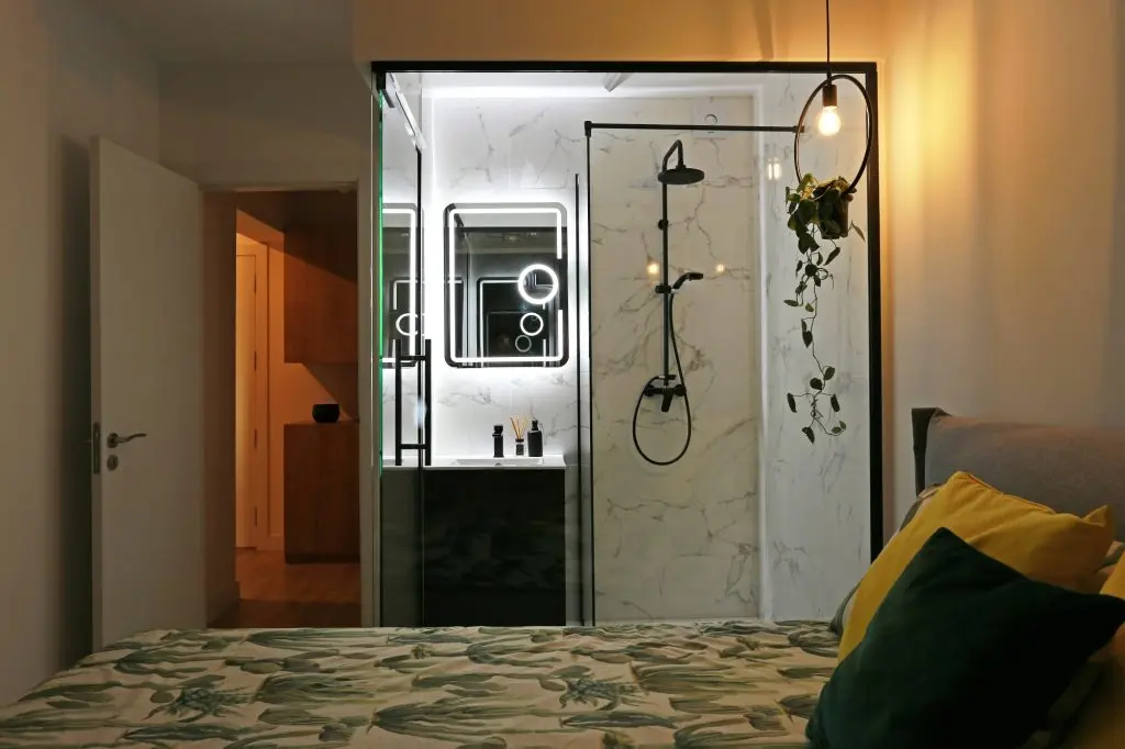 La nivel de compartimentare, locuinta dispune de o zona de zi generoasa (reconfigurata atent de catre designerii proiectului), hol de intrare primitor si un dormitor matrimonial. Un aspect inedit al acestei zonificari il reprezinta cele doua bai: baia cu lavoar si dus, inchisa cu sticla din dormitorul matrimonial si baia din hol cu lavoar si wc.