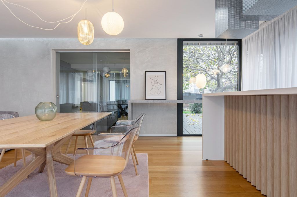 Povestea acestei amenajari incepe in 2021 din dorinta beneficiarilor (o familie tanara cu doi copii) de a-si extinde locuinta si a crea o legatura mai stransa intre zona de zi si curte, neexploatata anterior.