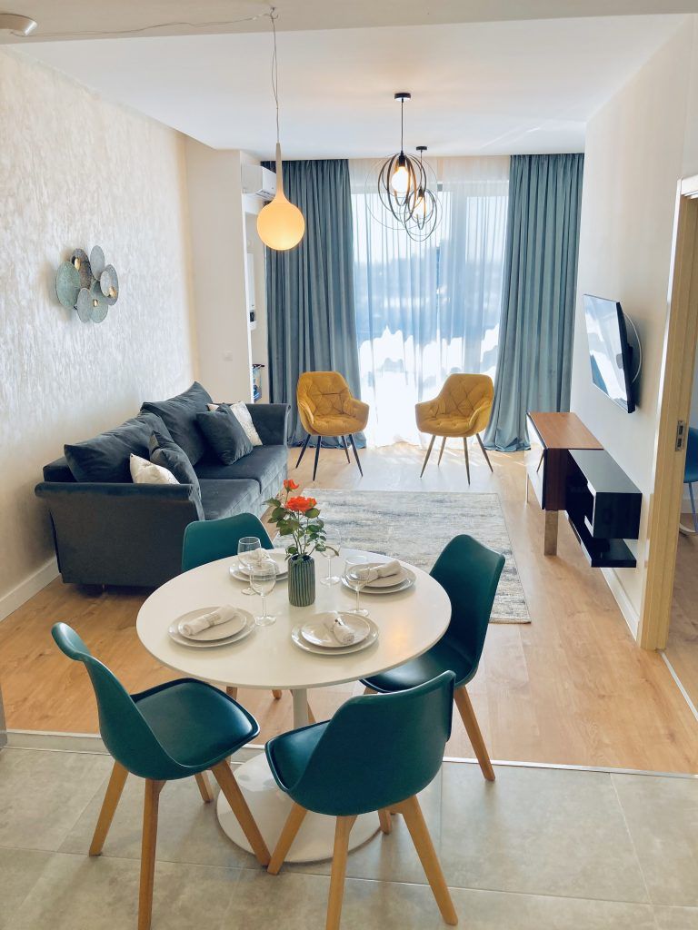 Acest apartament se dorea a fi o locuinta de vacanta de inchiriat in regim hotelier, astfel incat santierul inceput pe 15 aprilie avea termen de fializare la sfarsitul lunii mai. Multumita atentiei la detalii, organizarii si implicarii echipei, apartamentul a putut fi gata la 1 iunie 2021 pentru inaugurarea noului sezon.
