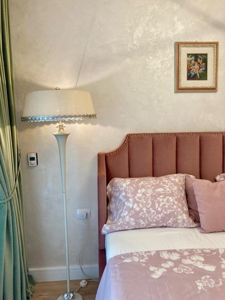 Pentru a se incadra in timpul limitat avut la dispozitie, designerul a ales sa propuna piese de mobilier aflate in stocul magazinelor de profil, pentru a completa armonios piesele deja existente apartinand proprietarului. “Lampadarul de lângă pat aparține proprietarului cumpărat din Italia, astfel toată amenajarea a gravitat in jurul obiectelor personale.”
