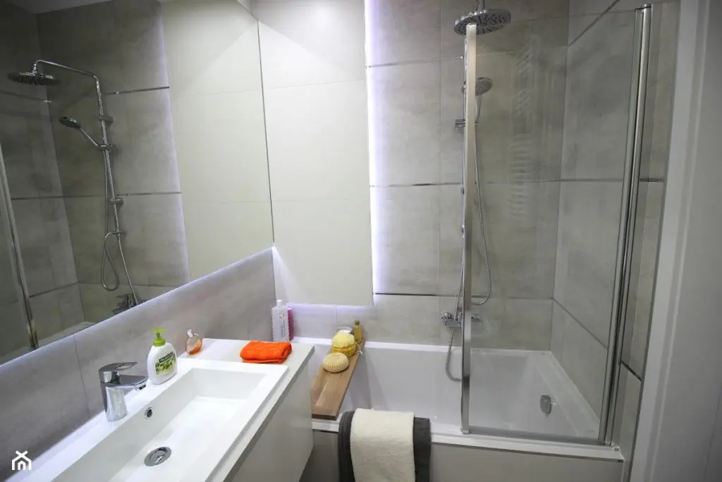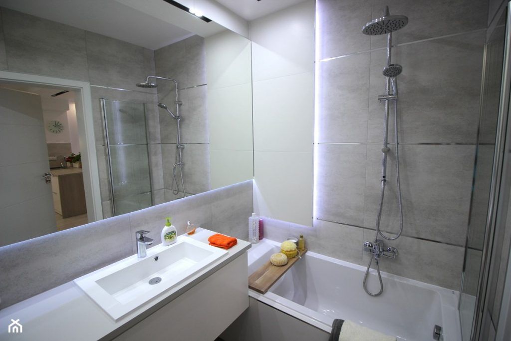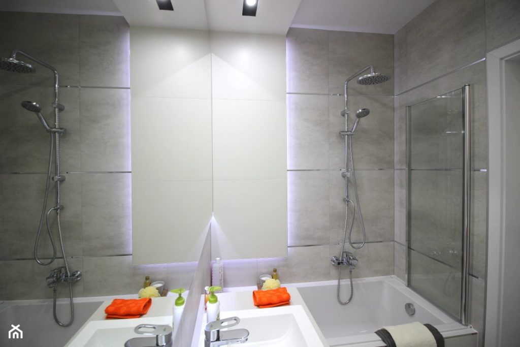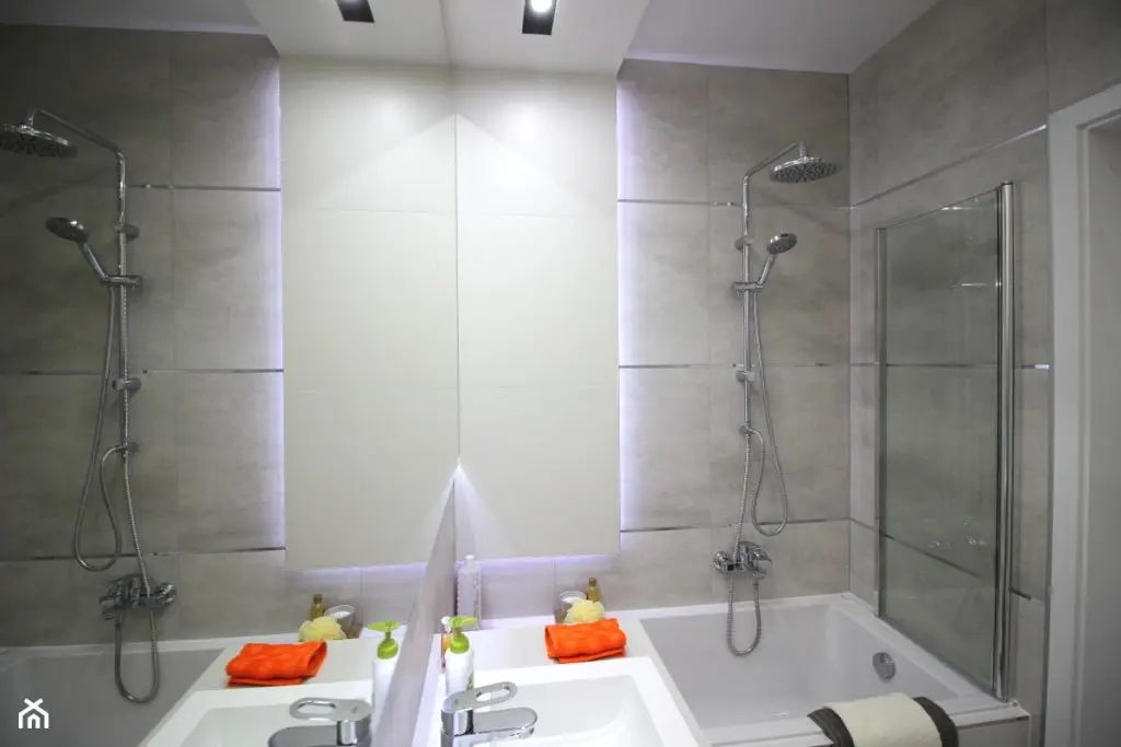 Si in baie regasim aceeasi amenajare moderna, cu benzi L ED care scot in evidenta piesele de mobilier.