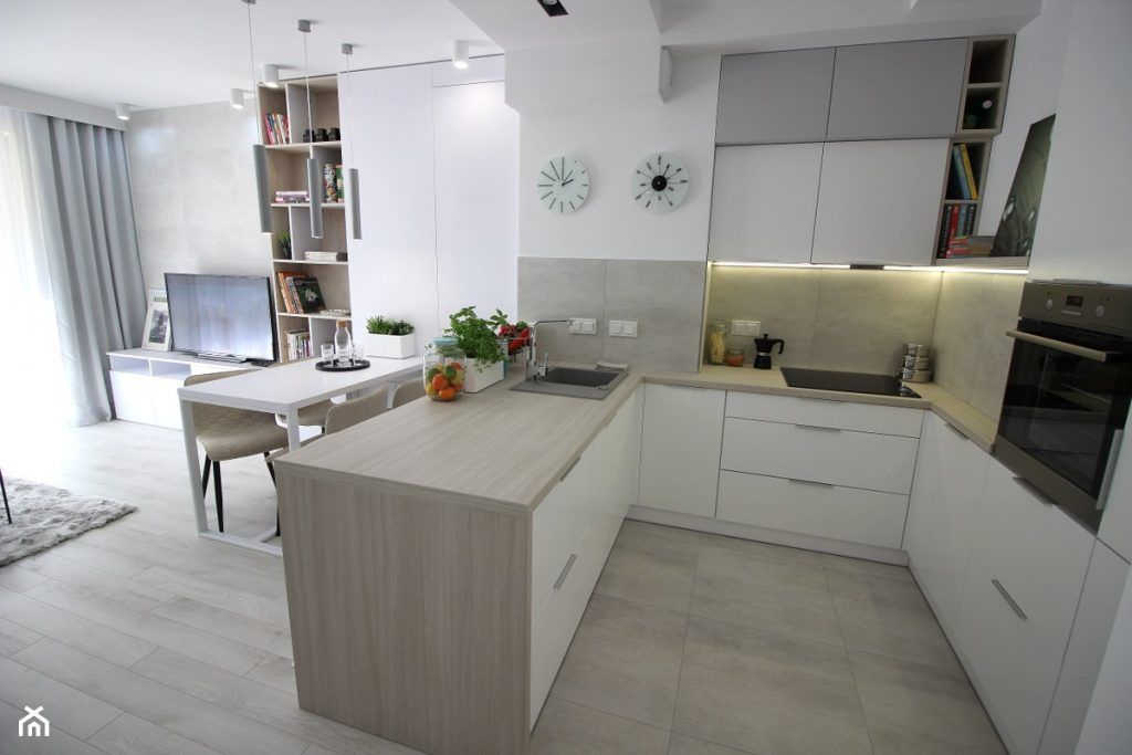 Spatiul de zi include bucataria, un mic dining si o zona de living, destinat conversatiilor sau relaxarii, formand impreuna un tot unitar armonios. Vizual, aceste zone sunt delimitate printr-o portiune de mobilier inclusa in bucatarie. Aceasta poate fi o idee foarte buna daca amenajarea camerei tale de zi este in plan deschis, precum cea de aici.