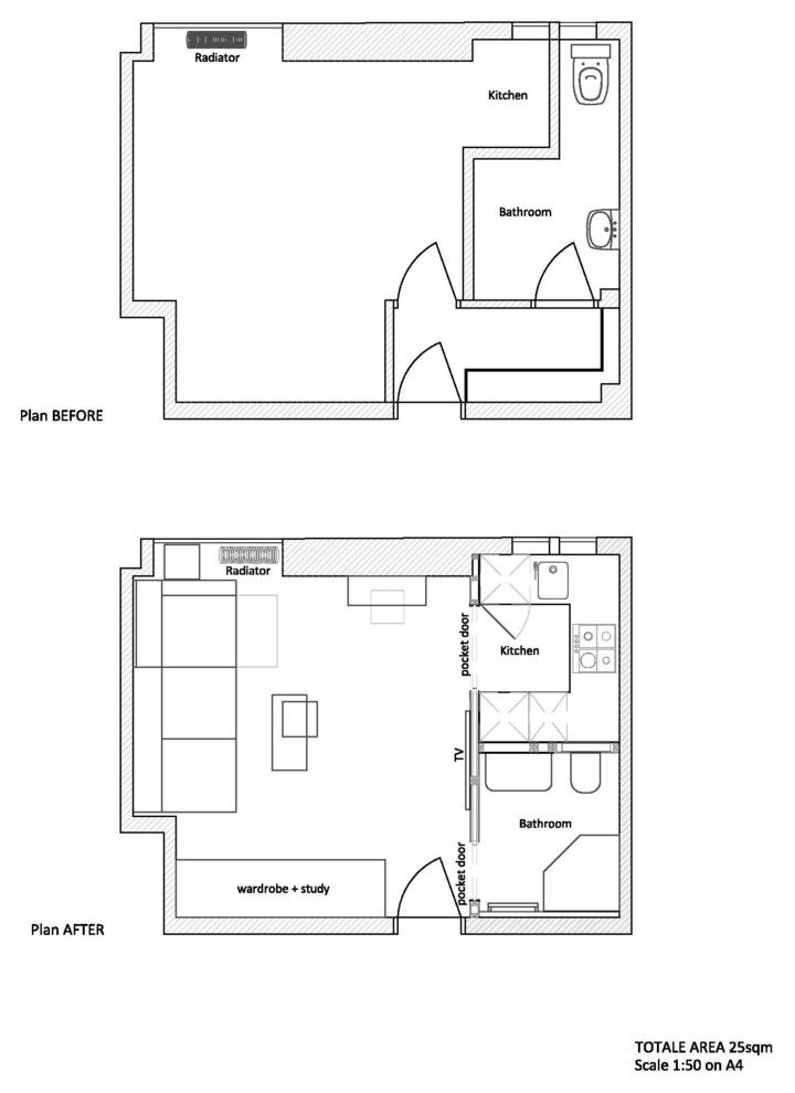 Reamenajarea acestei mici garsoniere este uimitoare. Aceasta satisface stilul de viata al unei persoane active ce are nevoie atat de spatiu de lucru, cat si pentru relaxare si odihna.