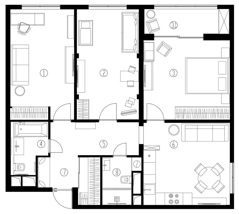 Interiorul acestui apartament spatios, plin de aer si lumina, poate fi o adevarata sursa de inspiratie pentru familiile care vor sa aduca in locuinta lor transpunerea in realitate a dorintelor fiecarui membru atat din punct de vedere artistic, cat si functional.