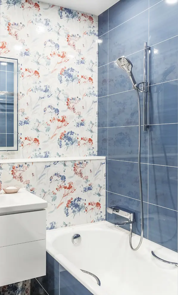 Pentru ca vorbim de un apartament cu 3 camere, structura acestuia are in componenta sa doua bai. Acestea reusesc in egala masura sa pastreze primavara ca si subiect principal al amenajarii estetice. In cazul primei bai se opteaza pentru albastrul vazduhului si accente florale feminine, iar pentru cea de a doua, galbenul este cel care iese din plin in evidenta exact ca o zi insorita in plina schimbare a sezonului.