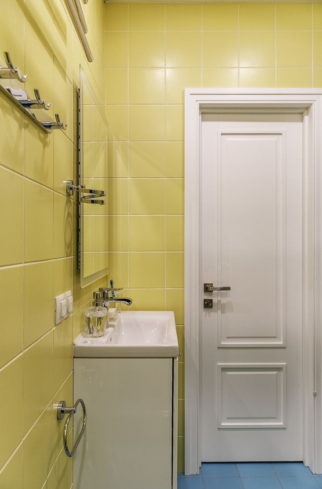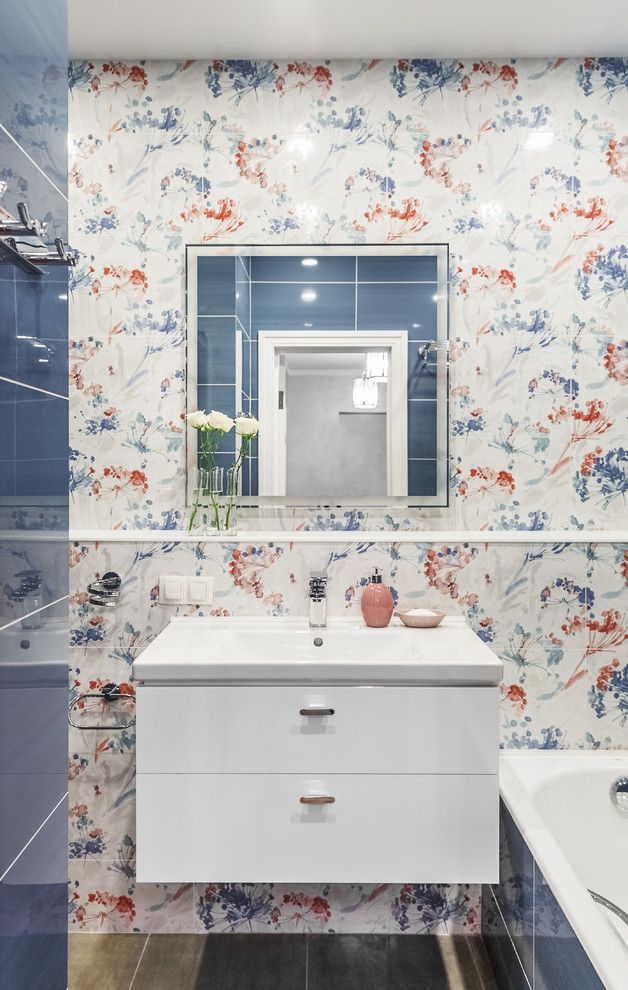 Pentru ca vorbim de un apartament cu 3 camere, structura acestuia are in componenta sa doua bai. Acestea reusesc in egala masura sa pastreze primavara ca si subiect principal al amenajarii estetice. In cazul primei bai se opteaza pentru albastrul vazduhului si accente florale feminine, iar pentru cea de a doua, galbenul este cel care iese din plin in evidenta exact ca o zi insorita in plina schimbare a sezonului.