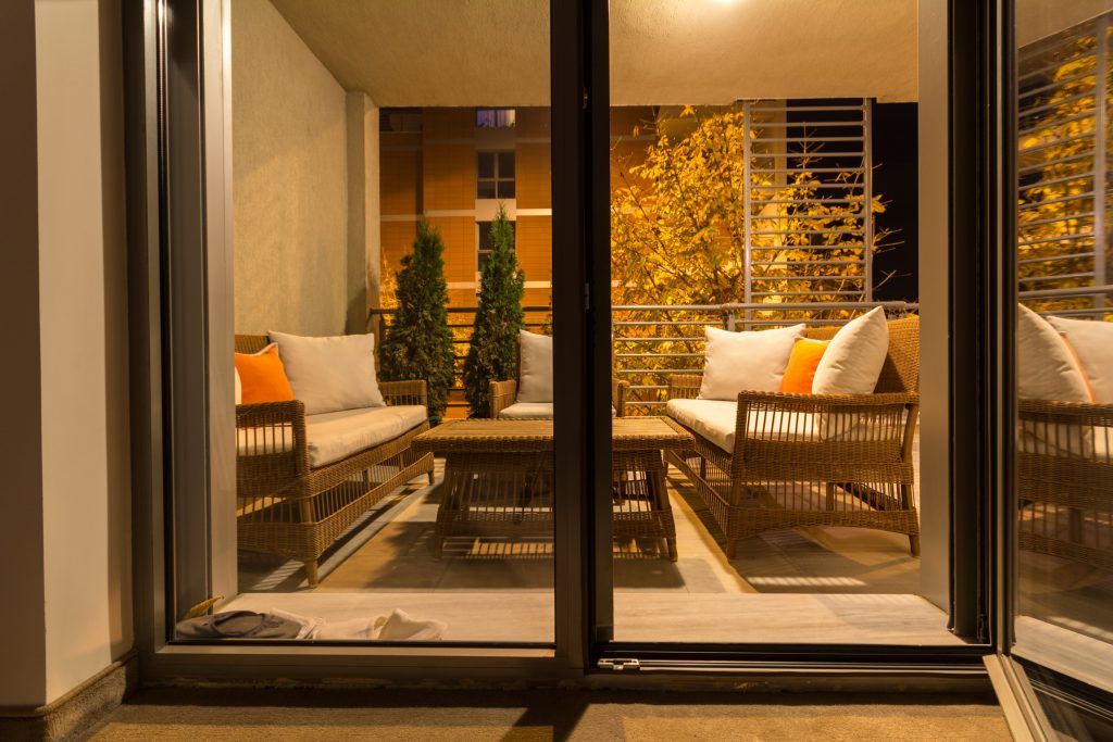 Din living se trece intr-o terasa spatioasa, de 20 mp, dispusa longitudinal si mobilata cu canapele si masa din ratan, pentru a deveni zona de socializare si luat masa atunci cand timpul de afara este favorabil.