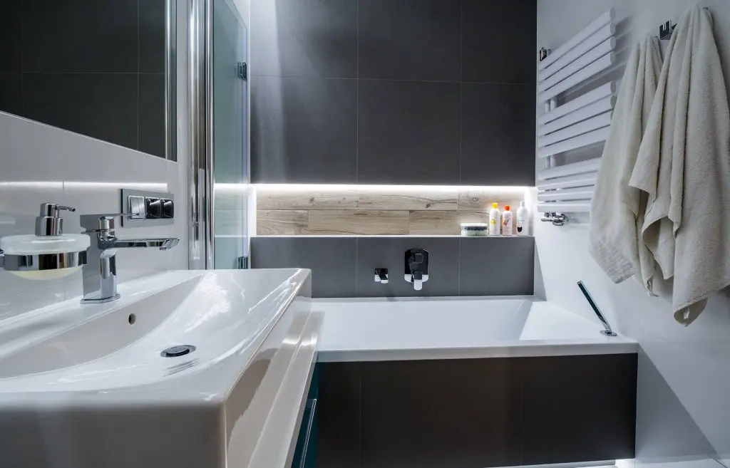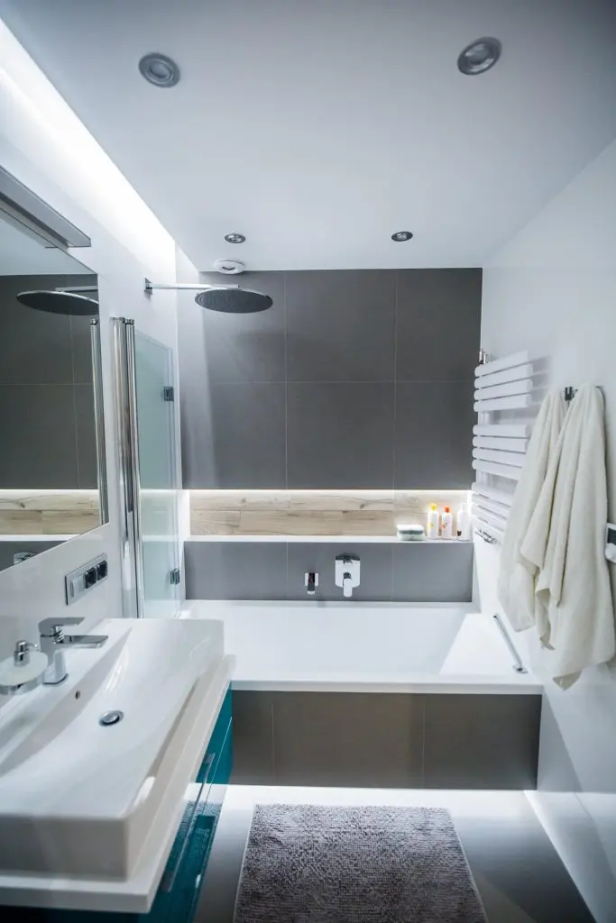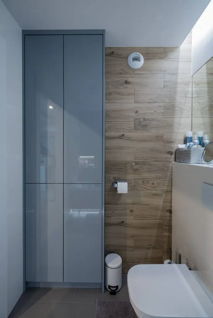 Spatiul baii este acea pagina de revista transpusa in realitate. Finisajele de exceptie si elementele moderne care o compun fac din aceasta incapere o dovada a evolutiei estetice. Lemnul natural, griul si tucoazul sunt cele care predomina. Corpurile sanitare au un design modern, iar zona dusului scoate la iveala un perete gandit cu scop practic dar si ornamental.