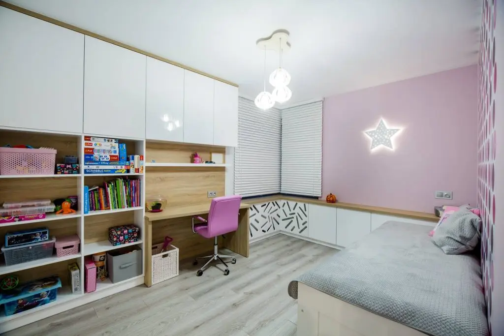 Pentru ca cel mai mic membru al familiei necesita o atentie mai sporita, spatiul sau va deveni unul independent, reprezentativ si cu accente jucause, ideal atat pentru relaxare, ca si pentru activitatile desfasurate zi de zi. Rozul devine nuanta dominanta, calmand vizual intregul dormitor.