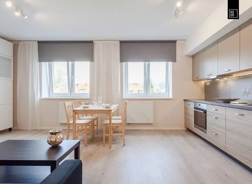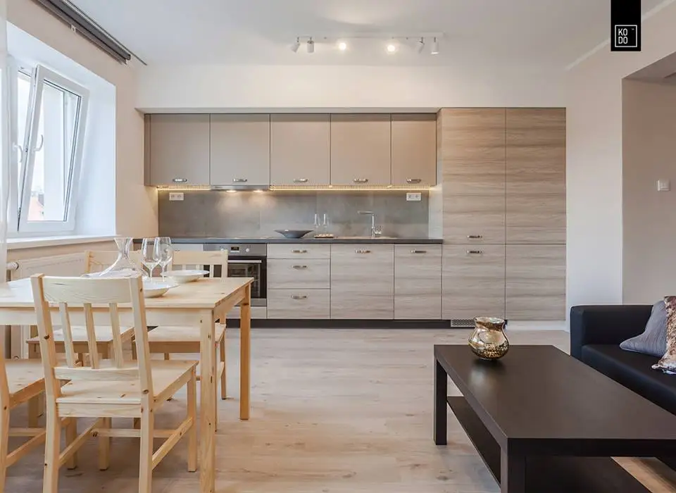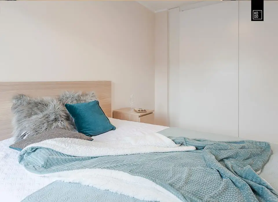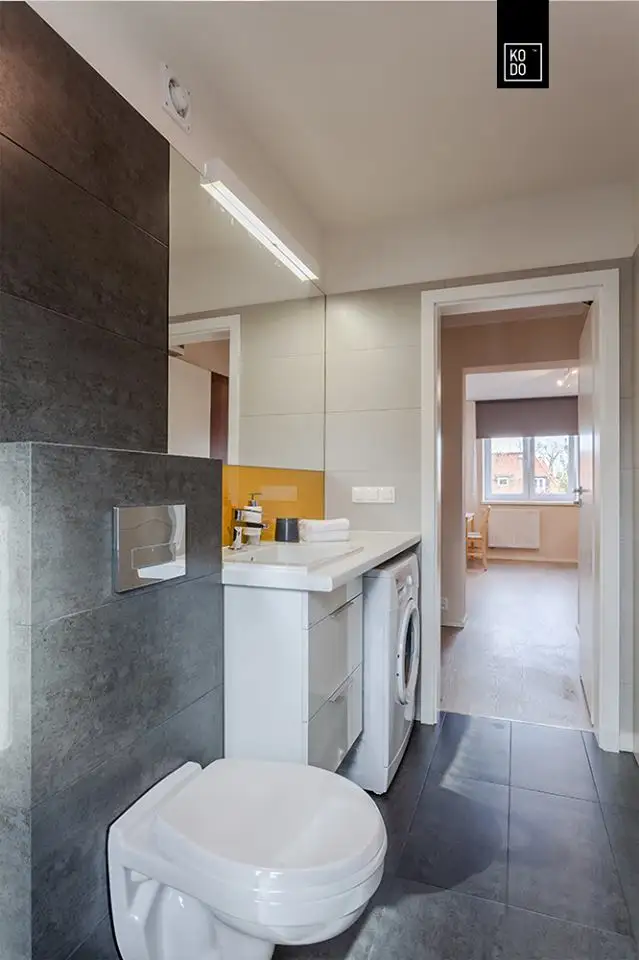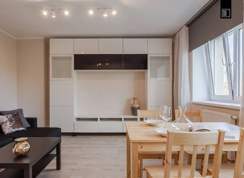 Spatiul despre care iti vorbim azi a fost amenajat de biroul de arhitectura Kodo din Polonia. Pentru acest apartament de 2 camere designerii si-au propus o abordare simpla intr-un stil actual, minimal. Au folosit mult alb pe care l-au echilibrat cu esente de lemn natur, de la pardoseala pana la mobilier. A rezultat astfel un design contemporan, simplu si functional.