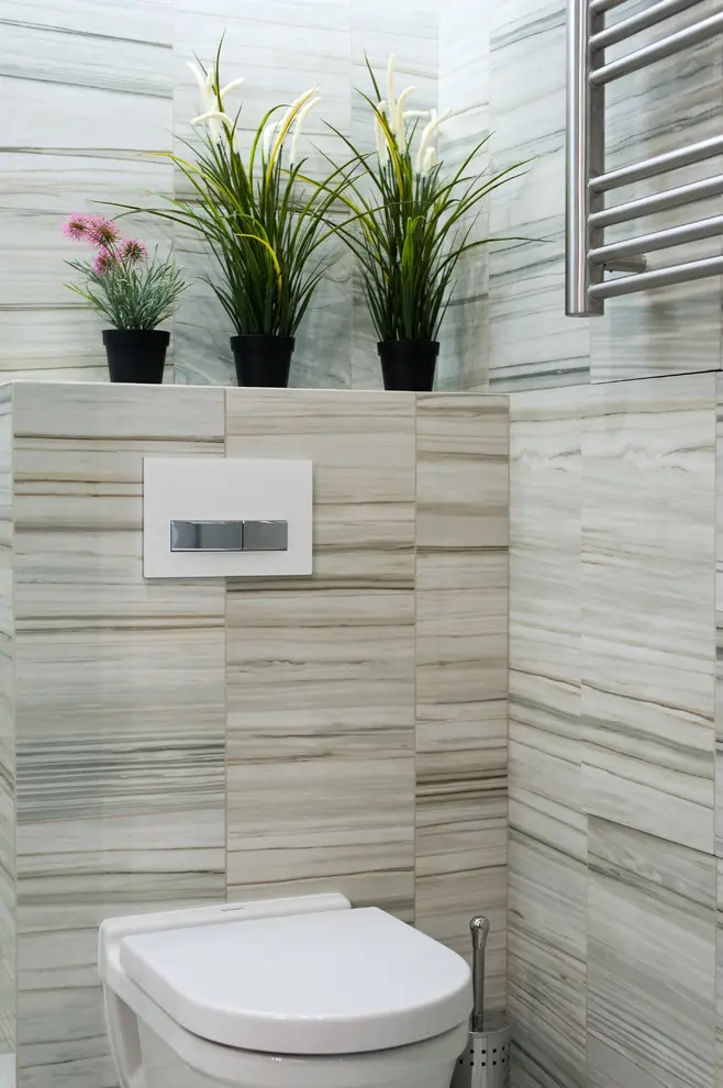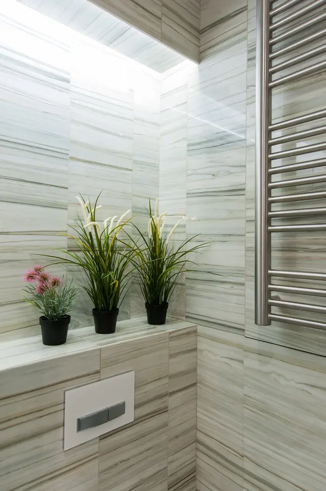 Designul baii este unul modern, minimal, cu cromatica deschisa bazata pe alb in combinatie cu crem, maro pentru a spori senzatia de spatialitate. Simpla, aerisita dotata cu strictul necesar baia respecta principiile intregului apartament: functionalitate si armonie.