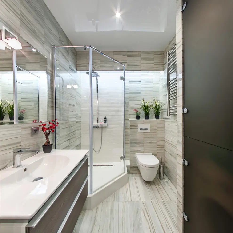 Pentru separarea vizuala a functiunilor s-a optat pentru usi din sticla glisante, optimizand astfel la maxim spatiul. Lumina reflectata preia coloristici si texturi diferite reusind sa adauge o imagine de ansamblu placuta.