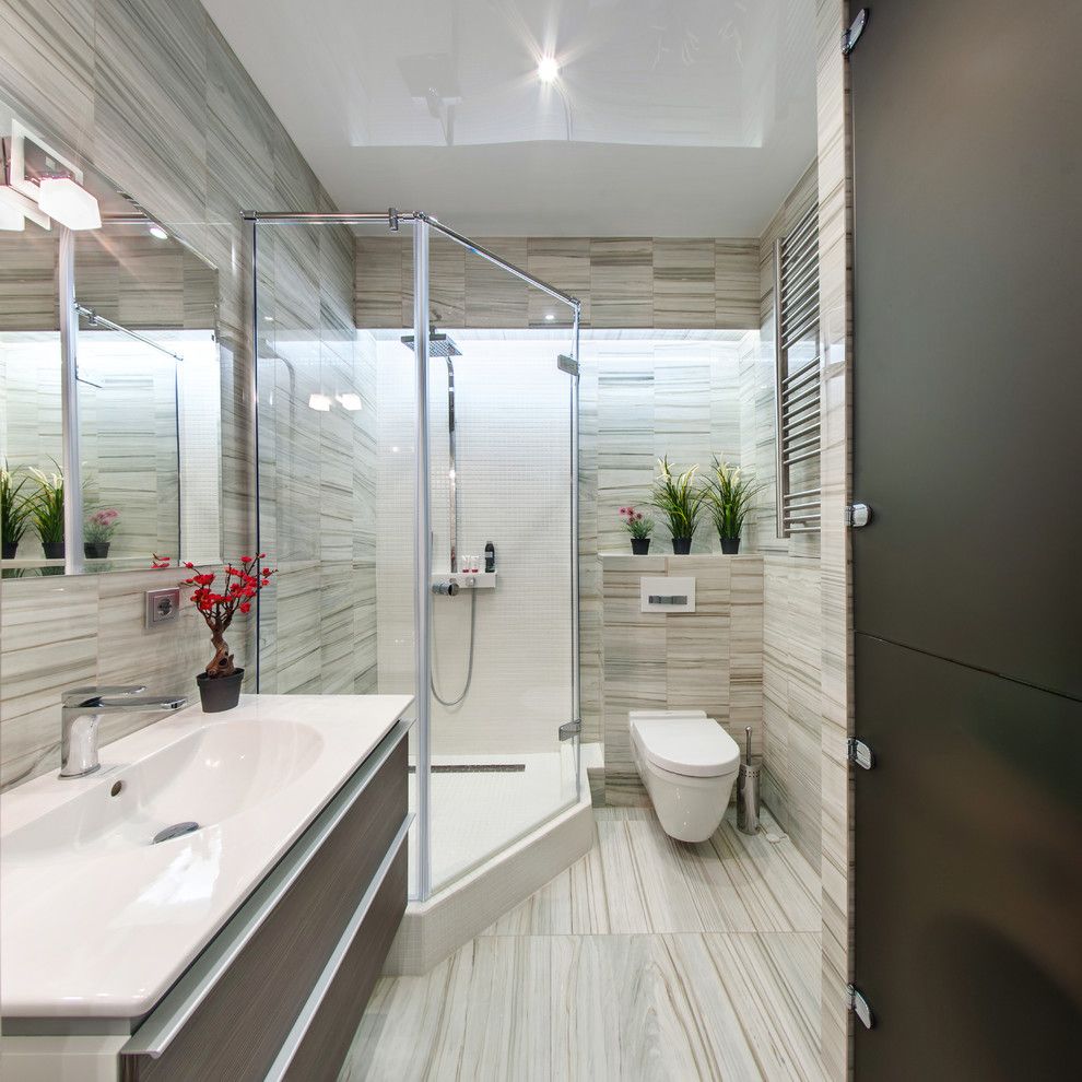 Designul baii este unul modern, minimal, cu cromatica deschisa bazata pe alb in combinatie cu crem, maro pentru a spori senzatia de spatialitate. Simpla, aerisita dotata cu strictul necesar baia respecta principiile intregului apartament: functionalitate si armonie.