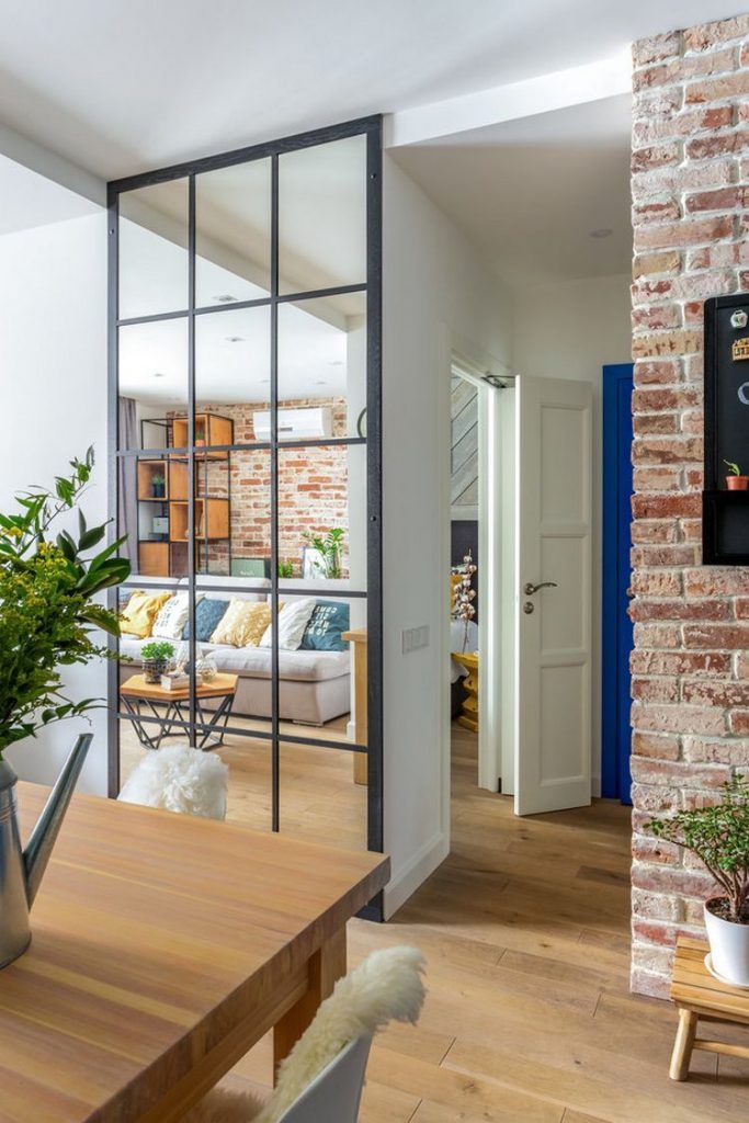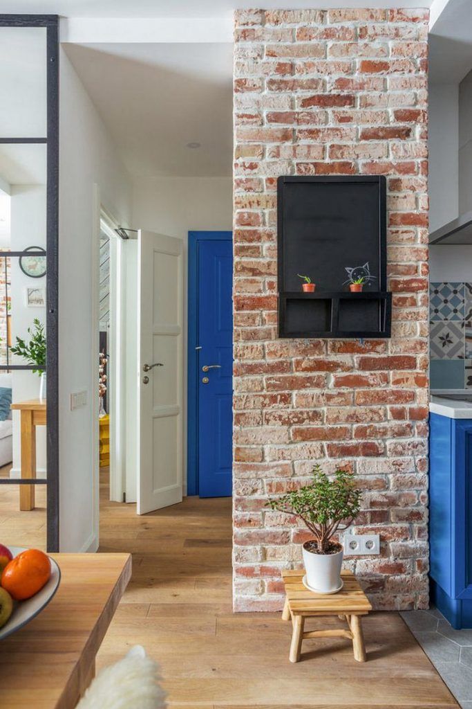 Camera de zi este un spatiu care primeste multa lumina naturala. Astfel, designerul a mizat pe acest detaliu atunci cand a reconfigurat apartamentul. Bucataria, aflata acum in capatul opus al ferestrei primeste parte din aceasta lumina, permitand o abordare mai indrazneata la nivelul cromaticii. Vei intalni aici albastru si placi decorative colorate care scot din banal amenajarea bucatariei. O atentie deosebita a fost acordata iluminatului artificial. Pentru ca fiecare zona din apartament sa fie pusa in valoare, designerul a prevazut diferite surse de iluminat, de la spoturi incastrate, pana la aplice si corpuri suspendate pentru accentuarea unui detaliu.