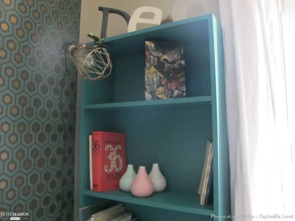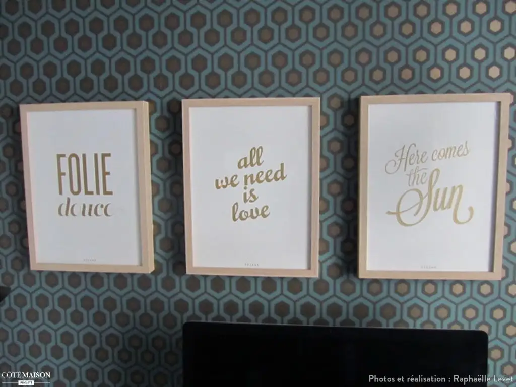 Aceasta amenajare pare locul ideal pentru lucra de acasa: o masa foarte comoda de sticla, dar nu exagerat de comoda incat sa poti adormi cu capul pe ea inaintea respectarii deadline-urilor importante, un perete accent cu un model de tapet foarte vesel, spatii de depozitare suficiente, doua tablouri cu mesaje motivationale care nu te lasa sa uiti ideile importante, plante pentru purificarea aerului si o lampa care sa lumineze tastatura sau cartile de pe birou.