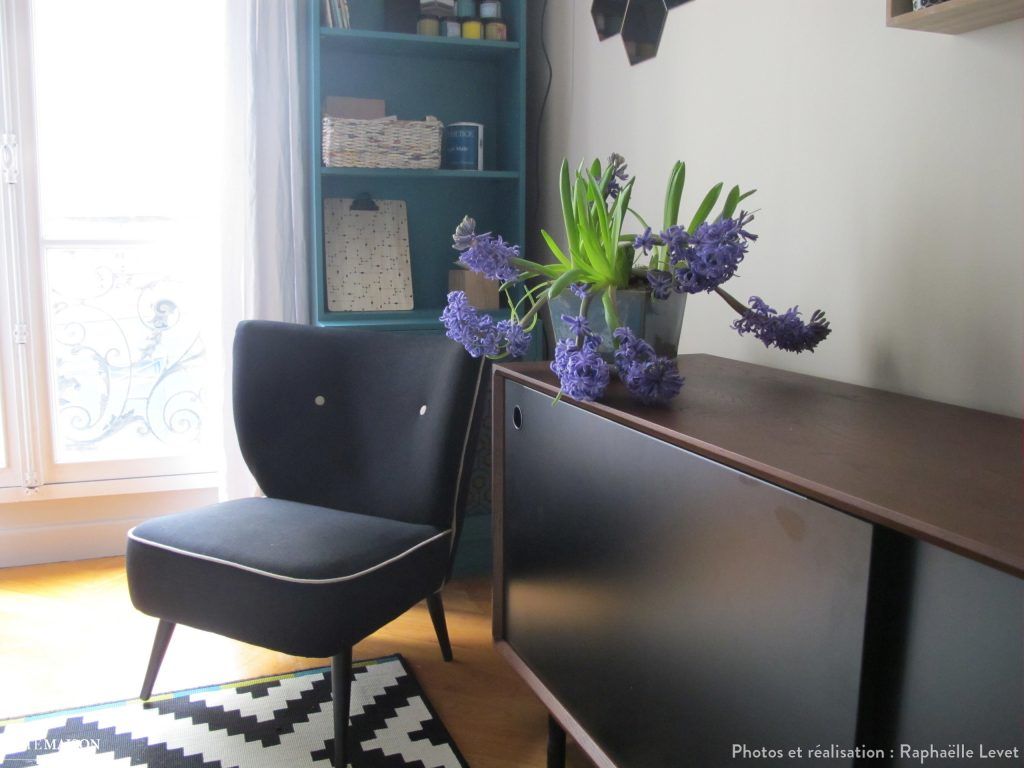 Fereastra din apropiere lumineaza foarte bine camera iar covorul cu un model in zig-zag ofera o atmosfera plina de viata. Scaunul este fix iar o perna pusa peste el ii asigura un plus de confort.