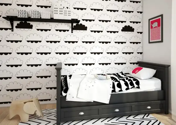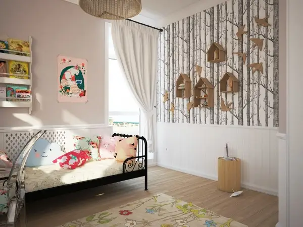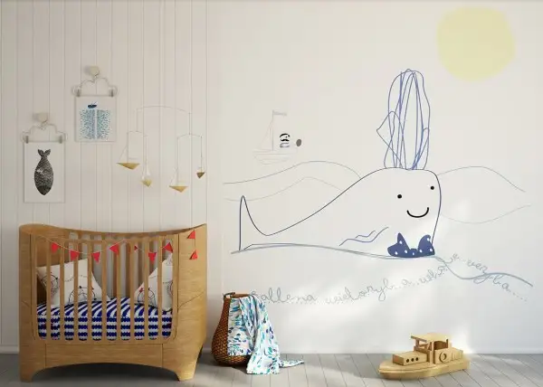 Personajele din desene animate se intalnesc des in camerele copiilor. O idee cu adevarat originala este sa lasati un perete liber pe care cel mic sa deseneze in voie. Evident, pentru aceasta amenajare folositi o vopsea speciala. Nu excludem aici nici vopseaua de tabla scolara care va face camera copiilor si mai distractiva.