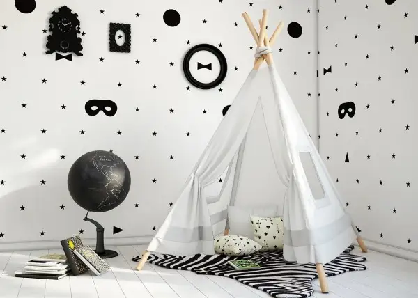 Copiii de toate varstele chiar si cei preadolescenti pot avea o camera cu un design care sa se potriveasca cu fiecare schimbare specifica varstei. Formele geometrice figureaza printre cele mai folosite tematici. Nu trebuie sa uitam aici nici combinatiile de culori puternice care joaca la randul lor un rol important in astfel de amenajari.