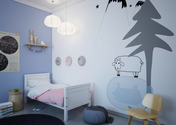 Personajele din desene animate se intalnesc des in camerele copiilor. O idee cu adevarat originala este sa lasati un perete liber pe care cel mic sa deseneze in voie. Evident, pentru aceasta amenajare folositi o vopsea speciala. Nu excludem aici nici vopseaua de tabla scolara care va face camera copiilor si mai distractiva.