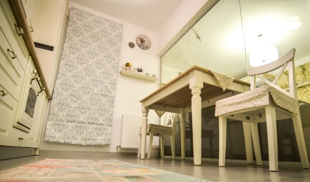 “Garsoniera nu a necesitat renovari majore. Am mizat pe valorificarea spatiului, atat estetic, cat si functional, incercand in aceeasi masura sa nu incarcam cu piese masive de mobilier interiorul”, afirma Carla si Iulia. Acesta este unul din motivele pentru care am lasat intentionat peretii cu lavabila alba, simpla; ne-am dorit sa insufletim amenajarea prin piesele de mobilier si accesorii.”