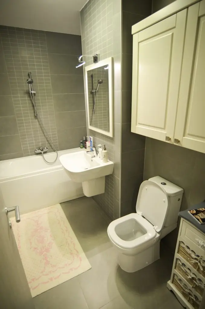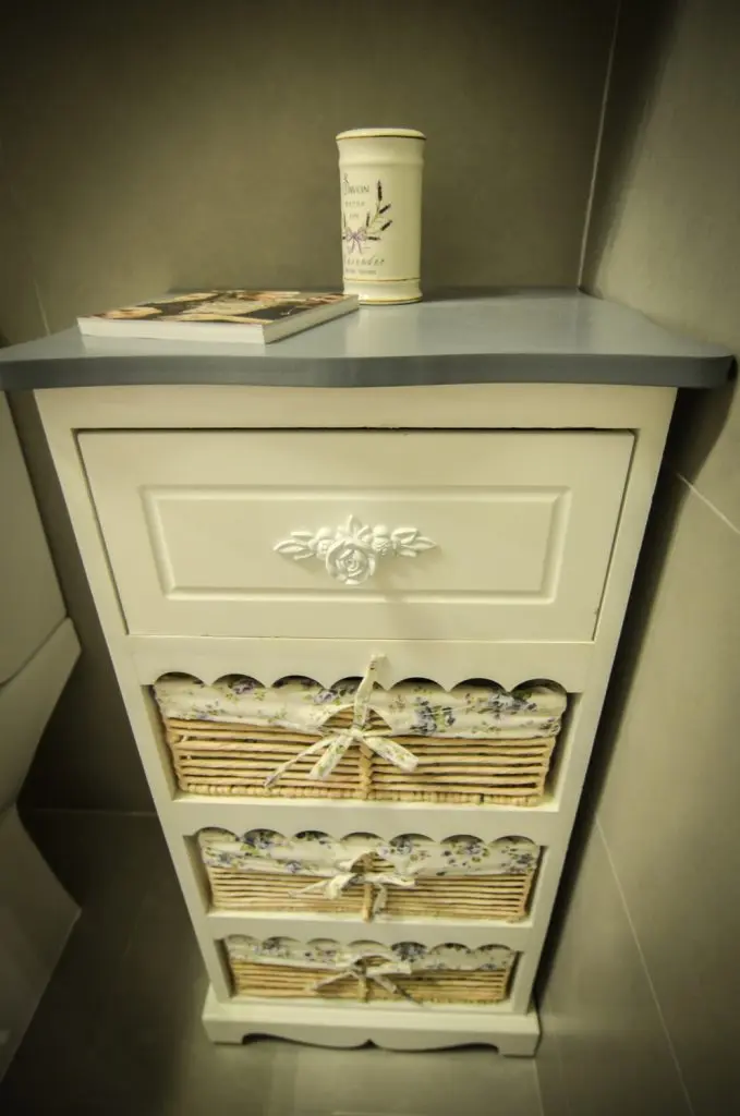 Am aflat de la Carla si Iulia ca mobilierul a fost realizat in intregime pe comanda dupa schitele si indicatiile lor. “Am folosit o combinatie de P AL si M DF vopsit cu finisaj mat, iar pentru fronturi am ales o varianta de usa cu tablie frezata.” Canapeaua din living si bancheta din hol au fost realizate la Everart si tot de acolo am achizitionat si materialele pentru perdele, draperii si sistemele romane pe care le puteti vedea in living si bucatarie.”