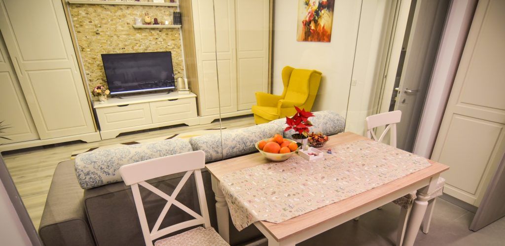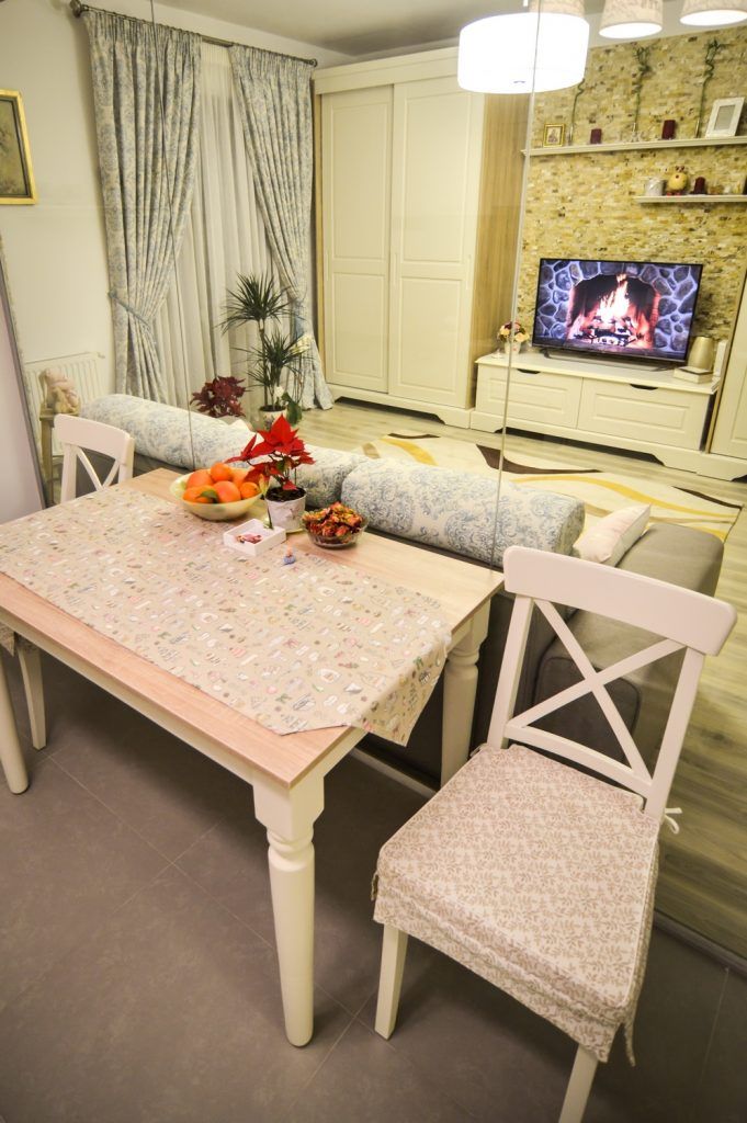 “Garsoniera nu a necesitat renovari majore. Am mizat pe valorificarea spatiului, atat estetic, cat si functional, incercand in aceeasi masura sa nu incarcam cu piese masive de mobilier interiorul”, afirma Carla si Iulia. Acesta este unul din motivele pentru care am lasat intentionat peretii cu lavabila alba, simpla; ne-am dorit sa insufletim amenajarea prin piesele de mobilier si accesorii.”