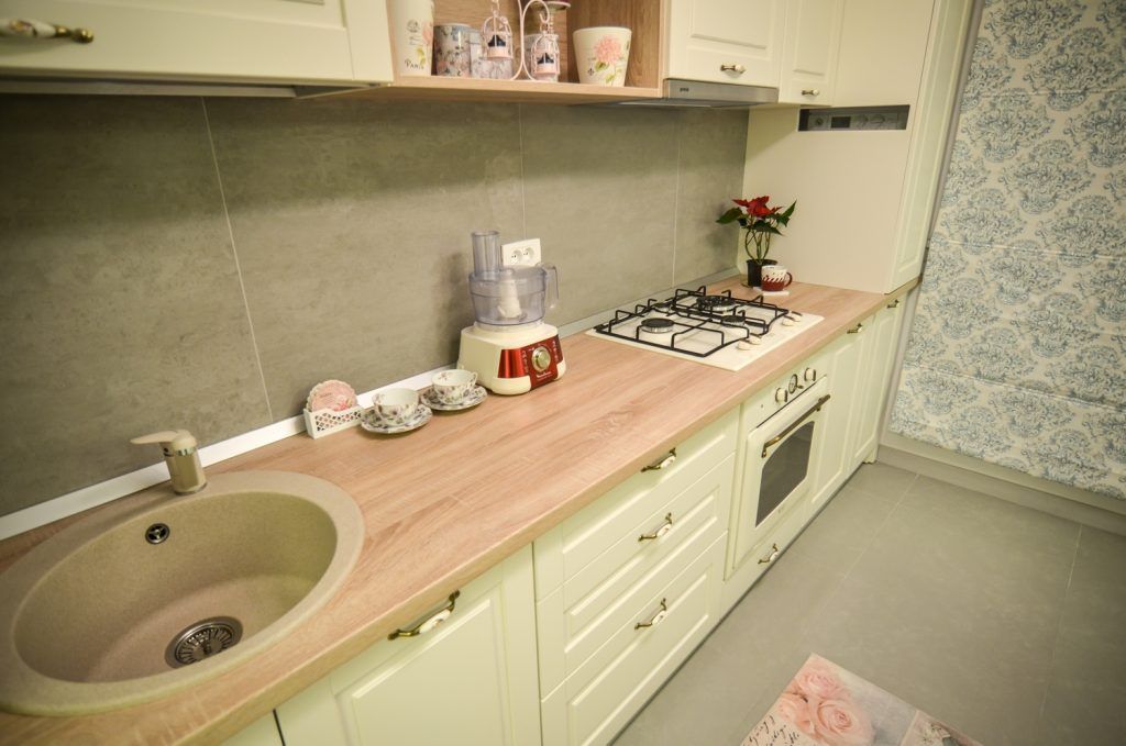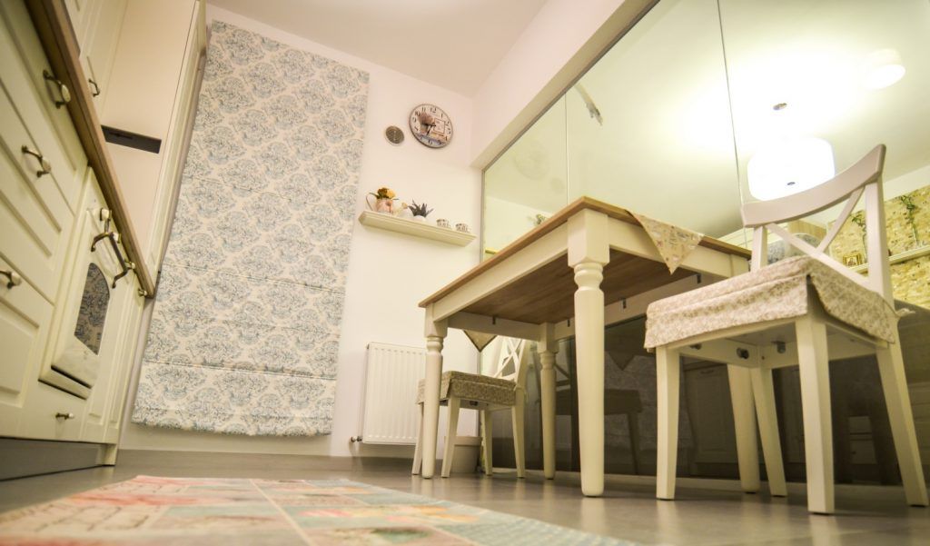 Am aflat de la Carla si Iulia ca mobilierul a fost realizat in intregime pe comanda dupa schitele si indicatiile lor. “Am folosit o combinatie de P AL si M DF vopsit cu finisaj mat, iar pentru fronturi am ales o varianta de usa cu tablie frezata.” Canapeaua din living si bancheta din hol au fost realizate la Everart si tot de acolo am achizitionat si materialele pentru perdele, draperii si sistemele romane pe care le puteti vedea in living si bucatarie.”