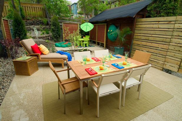 Ia in calcul tipul de mobilier si variaza-l in functie de activitati: pentru o zona de luat masa un foisor acoperit cu masa si scaune suficiente, pentru relaxare balansoare, banci sau chiar sezlonguri (pentru plaja in timpul verii), iar pentru copii zone speciale de joaca cu nisip, leagan sau chiar tobogan.
