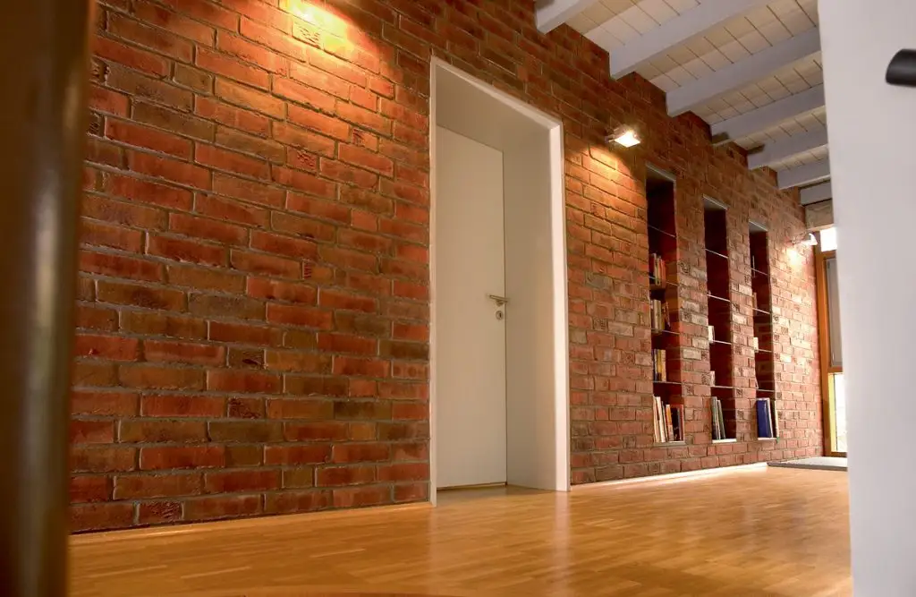 Daca locuiesti intr-o casa sau un apartament cu un spatiu mai generos, o alta idee de amenajarea a holurilor cu scop functional o constituie integrarea bibliotecii, prin realizarea unei zidarii aparente cu caramida Brikston klinker.