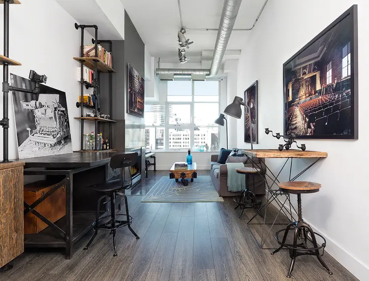 In amenajarea rafturilor clientii au solicitat expres ca materialele folosite sa fie lemnul si metalul. Au vrut ca loft-ul sa aiba un aer "fresh", primitor si curat. Designerii au respectat cerintele si au adougat acele cadre din conducte ale rafturilor, dar si acea conducta de ventilatie care strabate intreaga incapere.