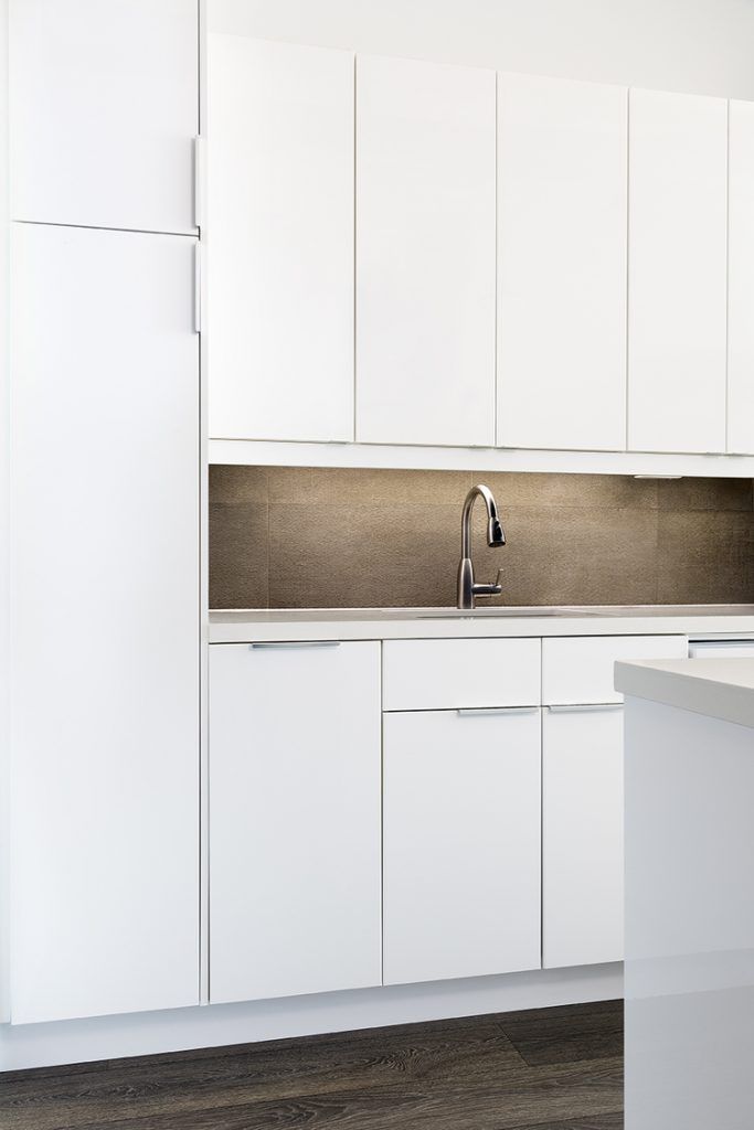 Decorul la care s-a renuntat, format din peretii bej, mobila si parchetul din lemn de stejar, era foarte "aglomerat" si totul parea foarte sufocant. Designerii au ales sa vopseasca peretii in alb care sa puna in valoare foarte bine parchetul laminat si celelalte elemente.