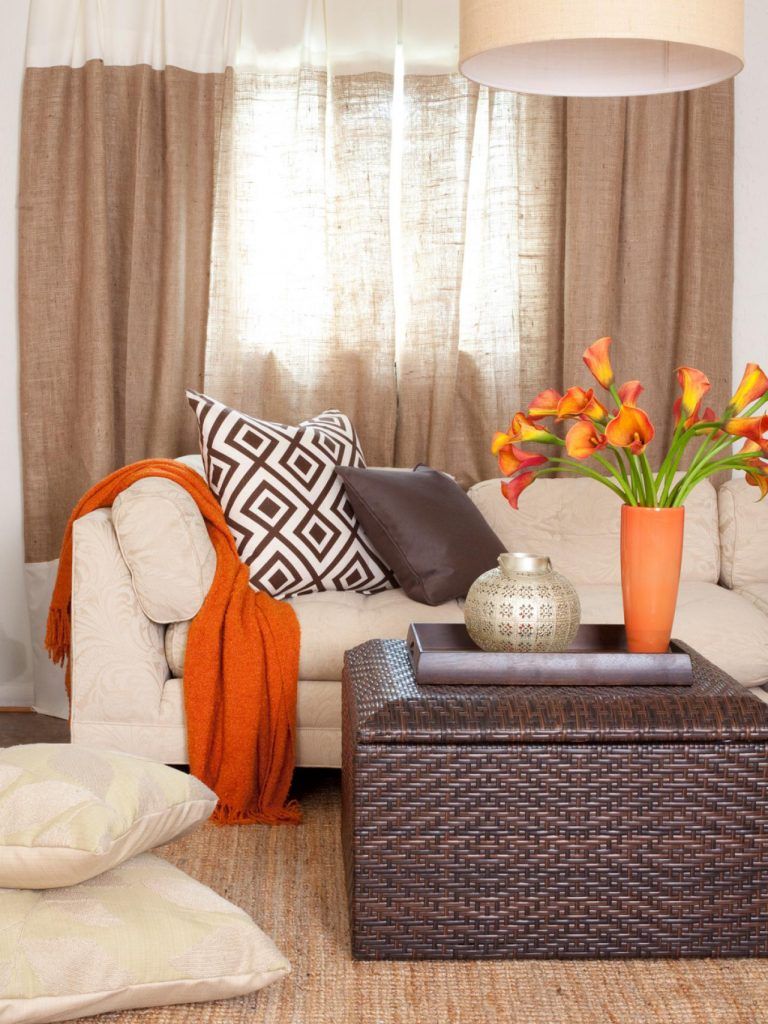 Nu doar cromatica e cea care ne duce cu gandul la natura, la copaci si pamant, ci si texturile mobilierului si decoratiunilor. Astfel, masuta de cafea este un cufar impletit din nuiele si perdelele sunt din iuta.