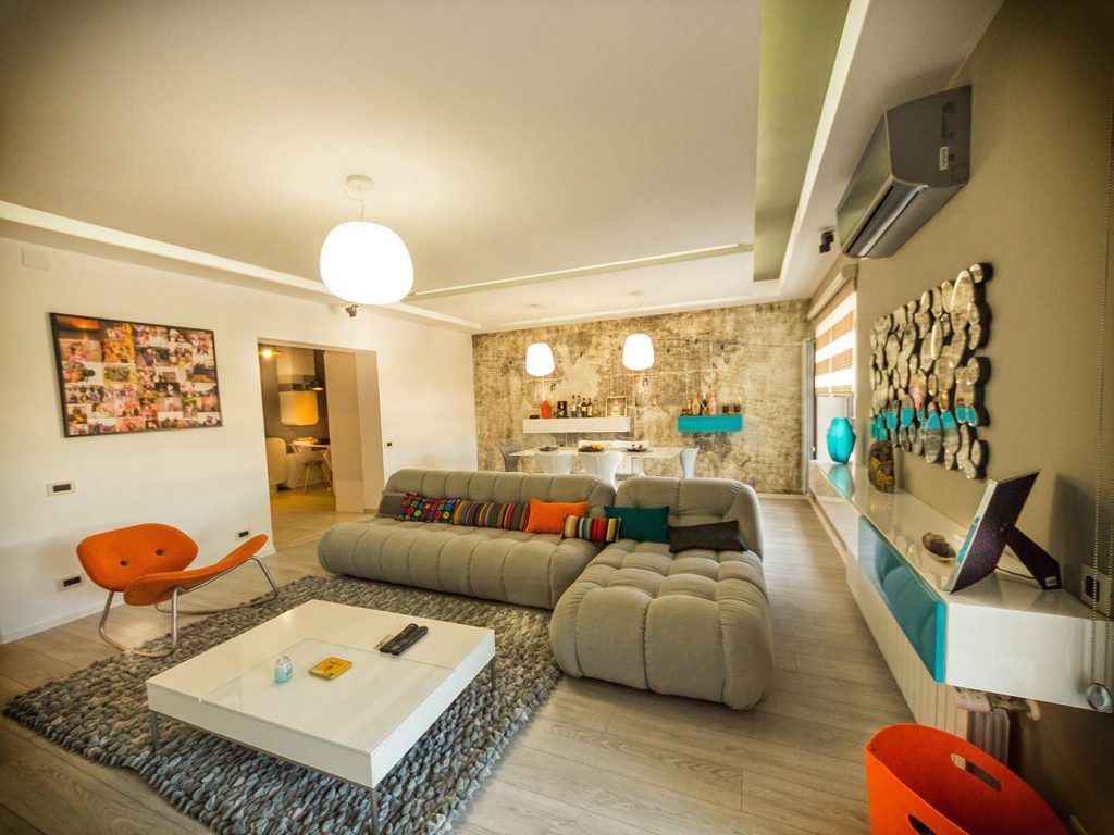Proprietarii unui apartament din Bucuresti si-au dorit sa-si amenajeze locuinta intr-un stil modern si nonconformist, dar, in acelasi timp, sa pastreze acel ambient cald si primitor de acasa. Amenajarea a fost gandita ca o tema ce se regaseste in toate incaperile locuintei. Elemntele principale sunt formele geometrice dispuse asimetric si schema de culori care reinterpreteaza, intr-o maniera moderna, elemente ale naturii, bej-oranj-turcoaz.